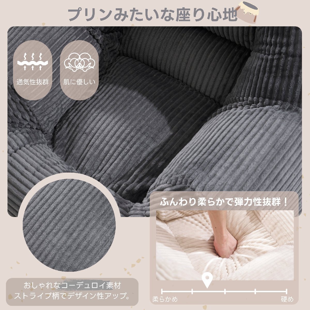 • 【優れた座り心地|ふかふかクッション】適度な密度のスポンジを使用しており、座るとしっかり支えつつも、柔らかさと弾力性を兼ね備えています。長時間座っても疲れにくく、リラックスタイムにぴったりです。背中をしっかり支えるため、壁がなくても快適に座れます。まるで砂浜に寝転んでいるような包まれる座り心地で、日常の疲れも癒されます。