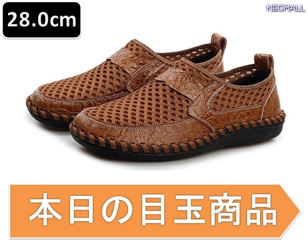 1スタ☆ ローファー ドライビングシューズ【405】ブラウン 28.0cm メッシュ 夏 通気 軽量 スニーカー スリッポン 紳士靴 カジュアル