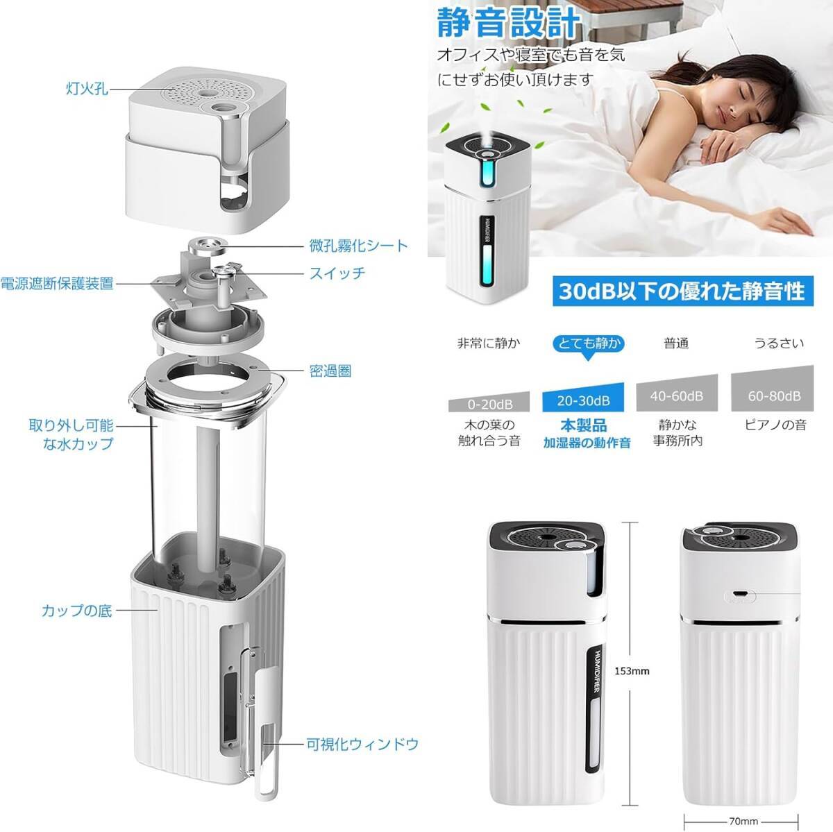 • 【小型卓上加湿器・超微細5μmミスト】 この加湿器は、ボトルサイズで手軽にオフィスや寝室の卓上に置いて使用でき、スペースを取らず、しっかりと加湿することができます。最新技術を基づいた超音波式加湿器で、タンク内の水を約5μmの霧にして噴出し、浸透力が従来品より強化されますので、秋冬のスキン、唇の乾燥に大活用。小型加湿器を使って適した湿度を保つことによって、埃の飛散、鼻や喉の乾燥を防ぎ、暮らしのお悩み対策(乾燥対策・花粉症対策・静電気対策)としても役立ちます。