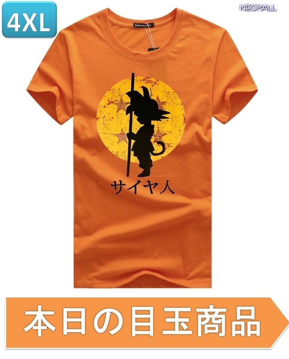 本日のお買得 ☆ 丸首 半袖 Tシャツ【344】 オレンジ 4XLサイズ トップス シャツ シンプル イラスト シルエット 春夏