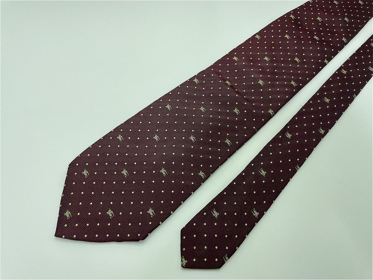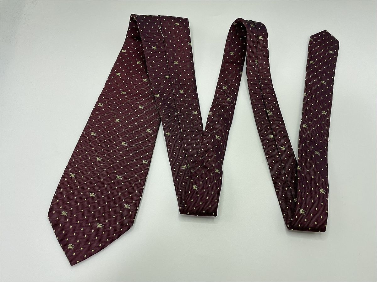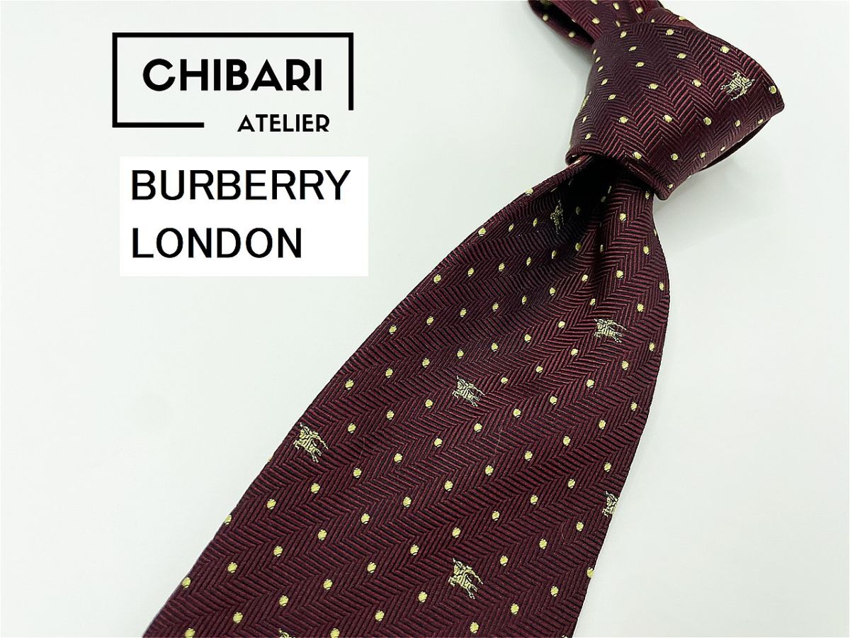 【超美品】BURBERRY LONDON バーバリーロンドン ロゴ&ドット柄 ネクタイ 3本以上 送料無料 メンズ ワインレッド 1101223