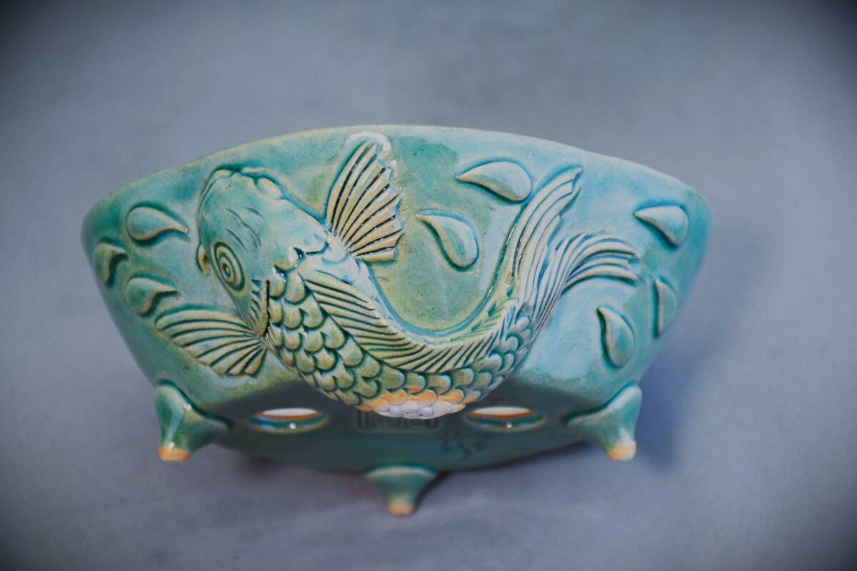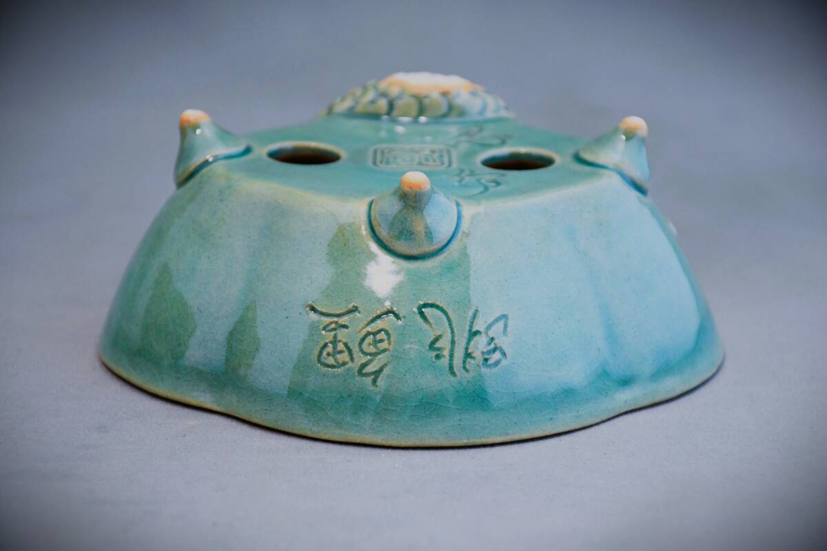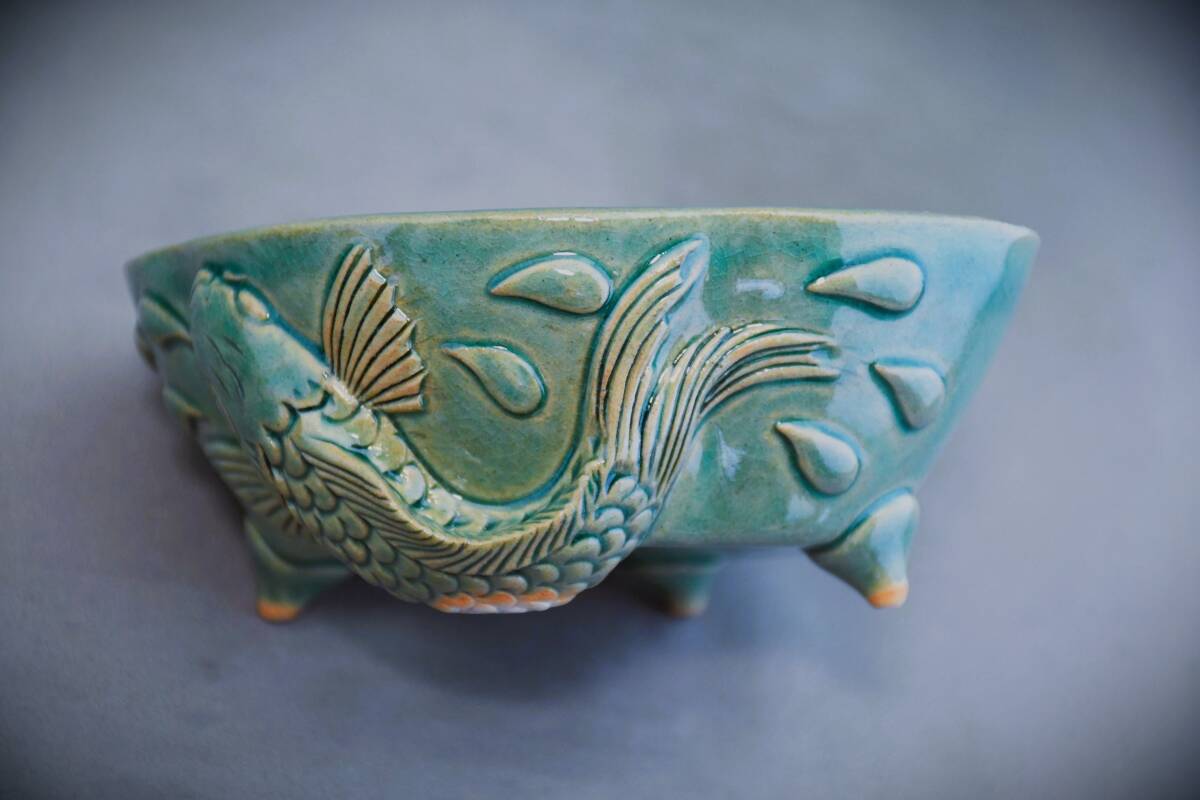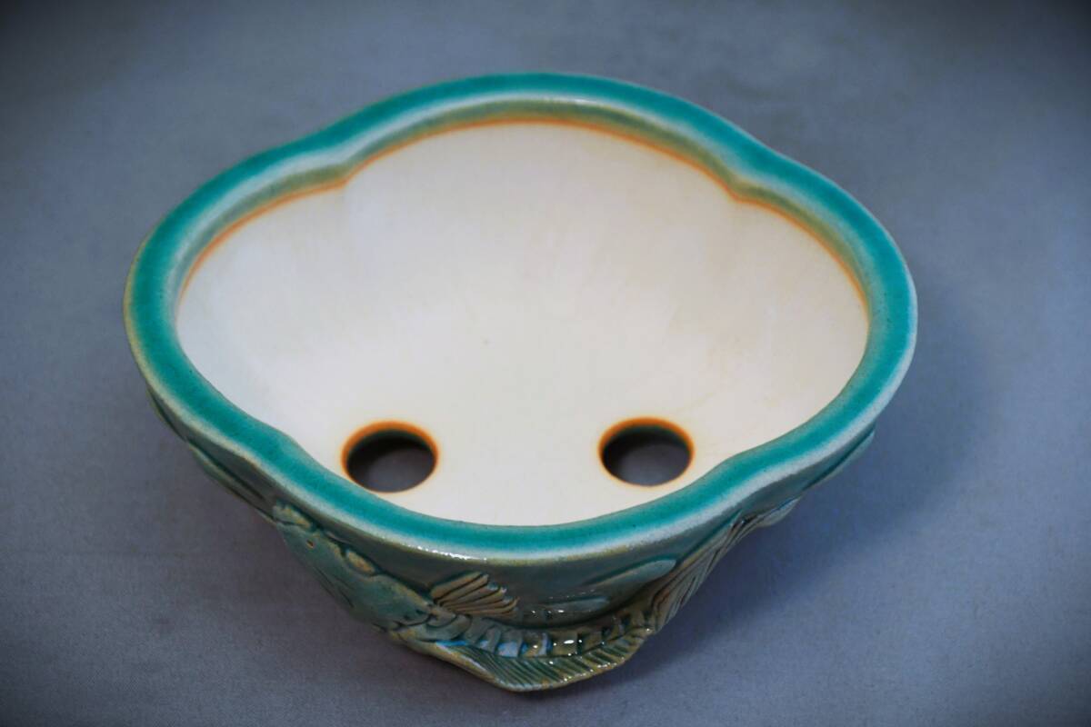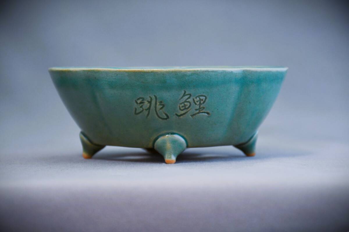 | ☆盆栽小鉢【跳鯉青磁釉猫足木瓜】雨宮忍作 巾13,6cm |