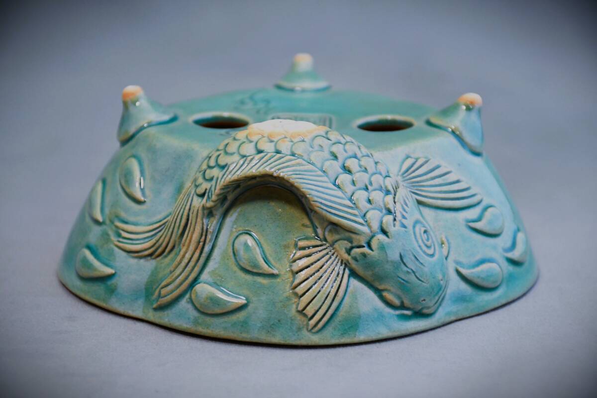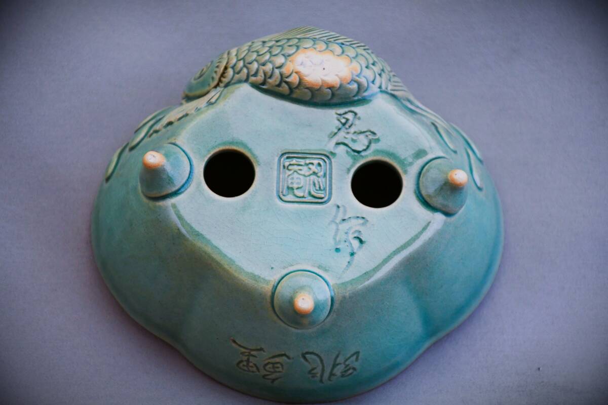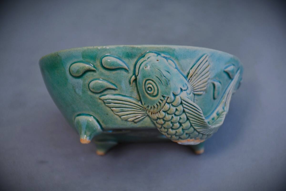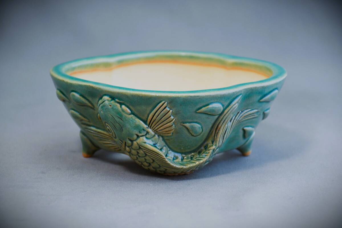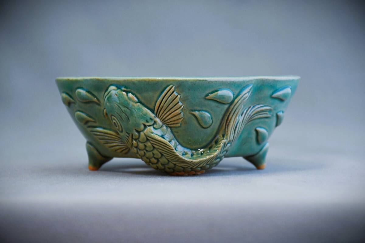 | ☆盆栽小鉢【跳鯉青磁釉猫足木瓜】雨宮忍作 巾13,6cm |