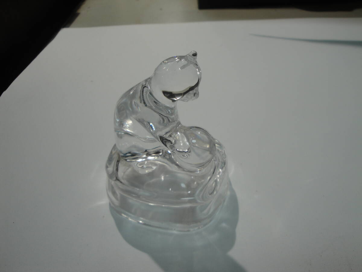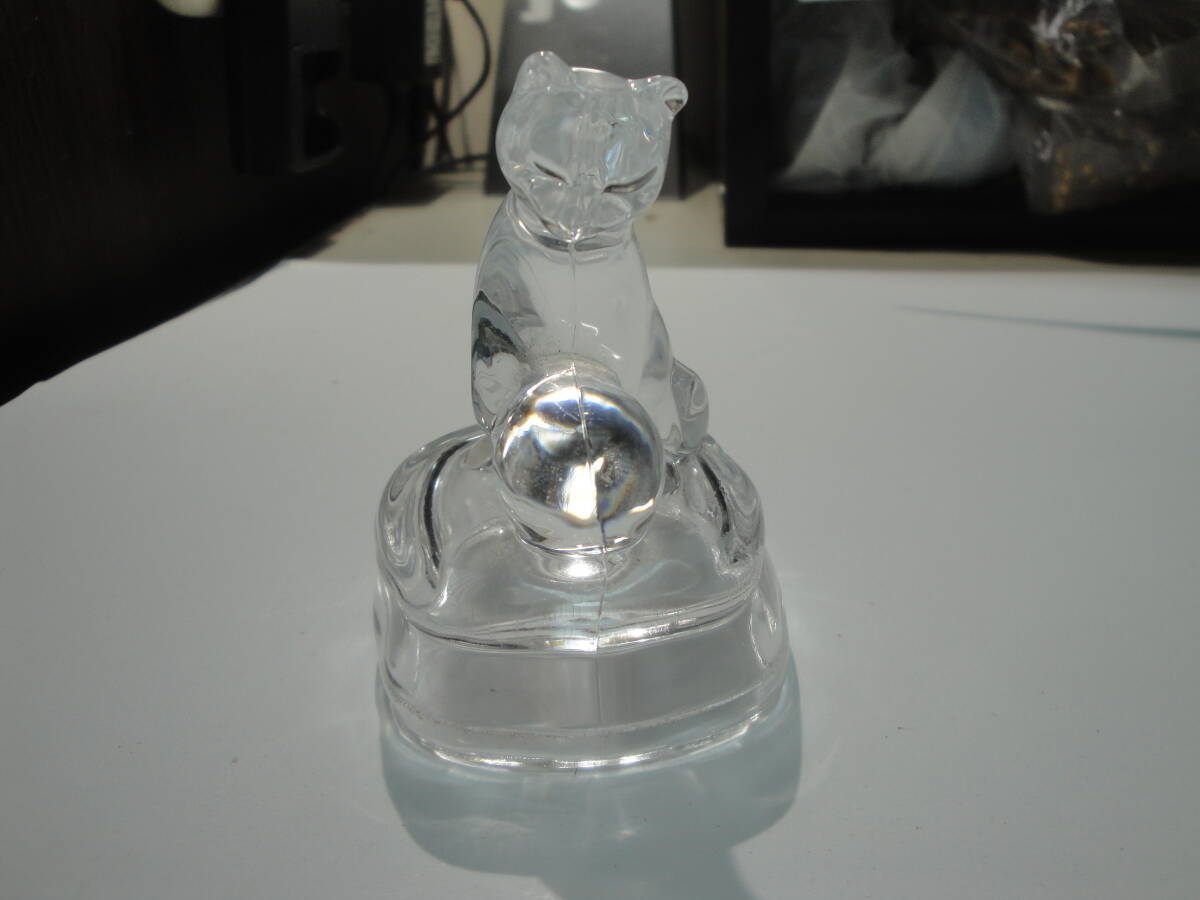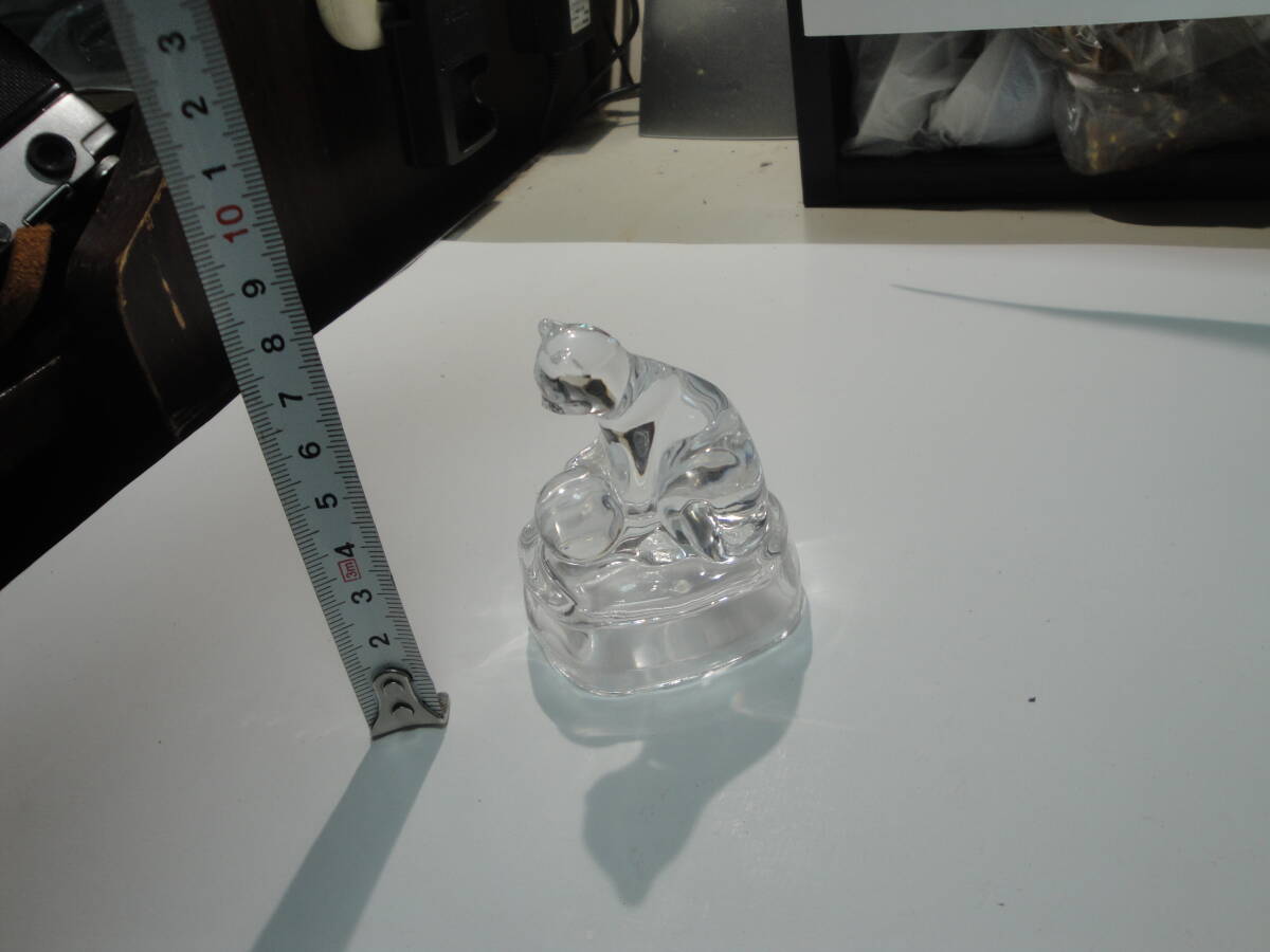 《 クリスタルガラス製:ネコ置物(サイズ約:台座(5.9×4.6)×高さ7.2cm・重さ115g》①☆です。写真5のように台座部は空洞になっています写真で判断願います。あくまでも中古品ですので,新品同様なものをお求めの方・気になさる方のご入札はご遠慮願います。ノークレーム、ノーリターンでお願いいたします。送料は、定形外(保証なし)で450円です。発送は原則週2回です。お手数をおかけしますがご入札の前に、必ずフォローリスト(自己紹介欄)と当該記載内容のご確認をお願いいたします(2日以上連絡がつかないときも,お手数をおかけしますがフォローリスト(自己紹介欄)をご覧の上ご連絡をお願いいたします)。中古品でございますのでノークレームでお願いいたします。問題発生時の対応につきましては、誠意をもって対応させていただきます。郵便局の定形外には、保証はありませんので保証の必要な場合はゆうパックをご利用願います。メールをいただければ5日程度の取置き(同梱)はOKですのでぜひご利用ください。落札後7日以上連絡が取れないときは自動的にキャンセルさせていただきます。(注)①迅速に対応するため、“「取引ナビ」:取引メッセージ”でお願いいたします。②万一の定形外商品未着に関する責任は負いませんので確実な配達のためゆうパックをお勧めいたします。③ゆうパック(着払いの対応はいたしません)ご利用の場合、送料は郵便局への持込み割引を含み一切割引の無い料金とさせていただきます。④状態の判断はあくまでの私見ですのでご理解願います。⑤評価の悪いが5個以上の方、新規の方は、お取引を確実にしていただける旨ご連絡ください。ご連絡のない場合は削除させていただきます。⑥ご入札後のキャンセルはできませんので十分に注意してご入札に参加願います。⑦レターパック対応の場合は、レターパック代に50円をプラスとさせていただきます。⑧領収書の発行はできません 。⑨万一、落札品が欠品・不具合で取引出来ない場合は,誠に申し訳ありません。実費(ご落札金額、送料、振込手数料)のみにて対応させていただきます。⑩ゆうパック(着払いの対応はいたしません)ご利用の場合、請求送料は郵便局への持込み割引を含み一切割引の無い料金とさせていただきます(実際の発送料金とは、120円の差があります)。【必ず自己紹介をお読みください。対応や発送できない期間などご案内しております】