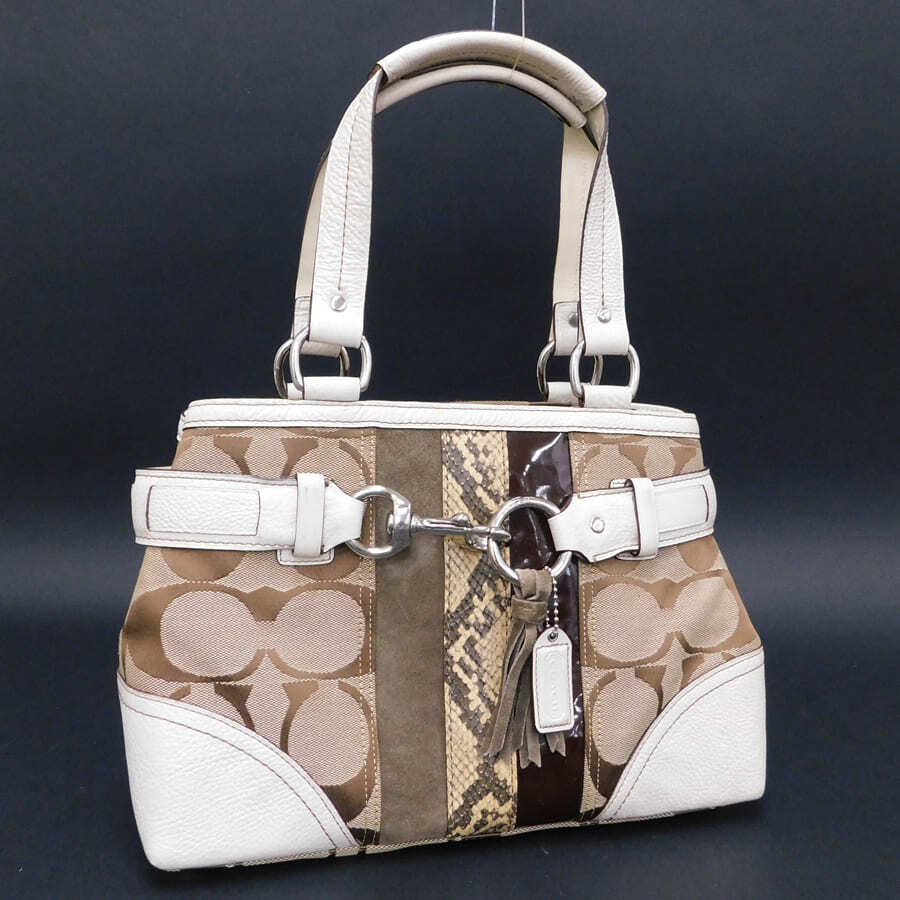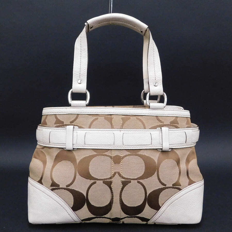 1円■美品/コーチ/ハンドバッグ/10262/ベージュ×ホワイト系/キャンバス×レザー/ラージシグネチャー/COACH ■E.Big.An-14[中古]