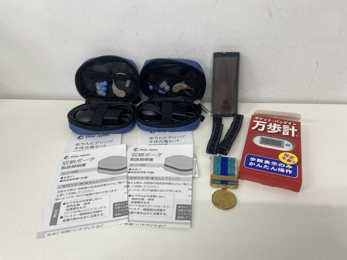 中古 楽ちんヒアリング本体充電セット 2点 集音器 通電・動作未確認 、 タケオキクチ アームバンド、 従軍記章、 万歩計 まとめ