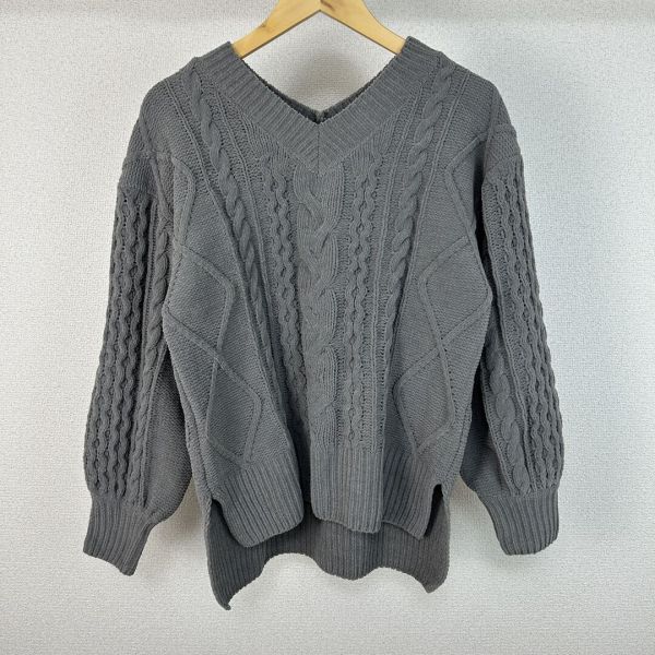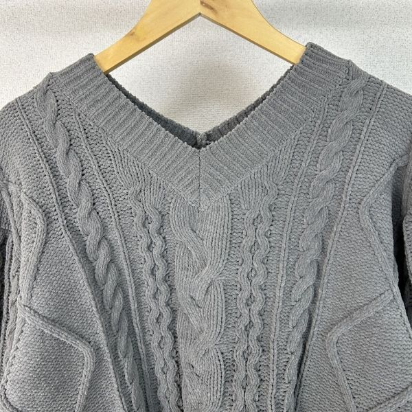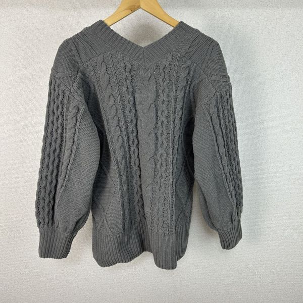 アズールバイマウジー AZUL BY MOUSSY ケーブルニット Vネックニット グレー Mサイズ レディース 古着 カジュアル 250HAG70-060I