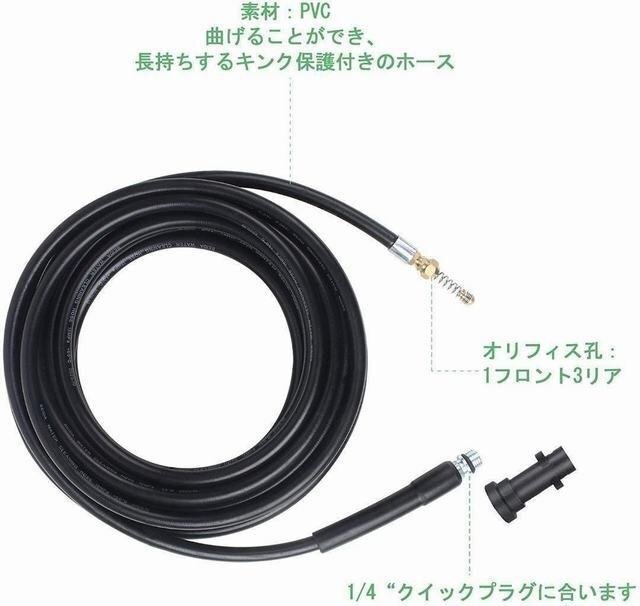 【商品説明】 ●ケルヒャー社製ではございません。交換性がある社外品になります。 ●商品名:ケルヒャー用 パイプクリーニングホース 10m ●色:ブラック ●パラメータ情報: 全長10M, 内径6mm, 外径12mm。 ●使用圧力: 18MPa(2610PSI)~30MPa(4400PSI) 最高温度: 60℃ ●オリフィス孔: 1フロント3リア; に合います: 1/4インチクイックプラグ ●アプリケーション: クリーニングキットは正面1穴、 後ろ3穴があり、 あるいは後ろ3穴しかない2パタンがありますので、 パイプ、 排水パイプ、 およびトイレのクリーニングと目詰まりの解消に効果的です。 ●優れた性能: 高品質のタイプのホースは、 長期の使用寿命と耐久性を保証します。 ホースは高品質の繊維編組で補強されており、 耐久性と長寿命を実現しています。 ●適用機種: ケルヒャー(Karcher)K2 K3 K4 K5 K6 K7圧力洗浄機には、 さまざまな種類のホースコネクタがあります。 ホースをご注文の際は、 継手のサイズをご確認ください。 または、 ご注文前にホースのモデルをご確認ください。 【セット内容】 パイプクリーニングホース10m、ケルヒャー接続用コネクタ 海外インポートなので、細かいホツレや汚れが有る場合がございます。そして,宅配便で発送しますので,箱付きの商品は角部分が凹む可能性がございます。ご理解の上ご購入ください。 ★お支払い方法はYahooかんたん決済しか選べないので,ご了承ください。 ★発送について★ ①基本は佐川急便で,ご入金が確認取れたあと,3-7日以内に発送させていただきます。場合によって1日2日ぐらい延長する可能性がございます。ご了承ください。 ②小物は他の宅配会社に頼む可能性がございます。その場合は事前に連絡させていただきます。 ③送料に付いて:沖縄、北海道、一部離島は別途料金が発生します。ご了承ください ★注意事項★ ご質問へのご返信は、営業時間外、また担当者不在などによりご返信が遅れる場合もございますので、あらかじめご了承ください。 質問欄からの値下げ交渉、返信はご対応出来ませんので予めご了承下さい。 在庫が切れた時,オークション自体を早期終了する場合がございます。 商品発送完了時に評価を行っております。評価の必要ない方は予めご連絡くださいますようお願い申し上げます。 ご連絡をいただけないまま27日以上過ぎました場合、落札者様の都合で削除させていただく可能性がございます。その場合自動的に悪い評価がついてしまいますのでご了承ください。 オークション管理上、商品の同梱の際の送料はオークション毎にかかります。ご了承お願いいたします。