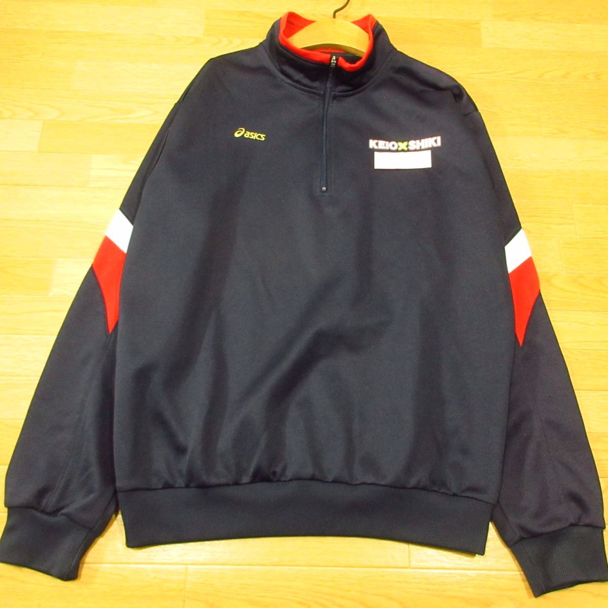 ◎慶應大学志木高校 asics アシックス ユニフォーム ジャージ ジャケット 支給品 実使用 メンズ 紺 XLサイズ◆AA5303