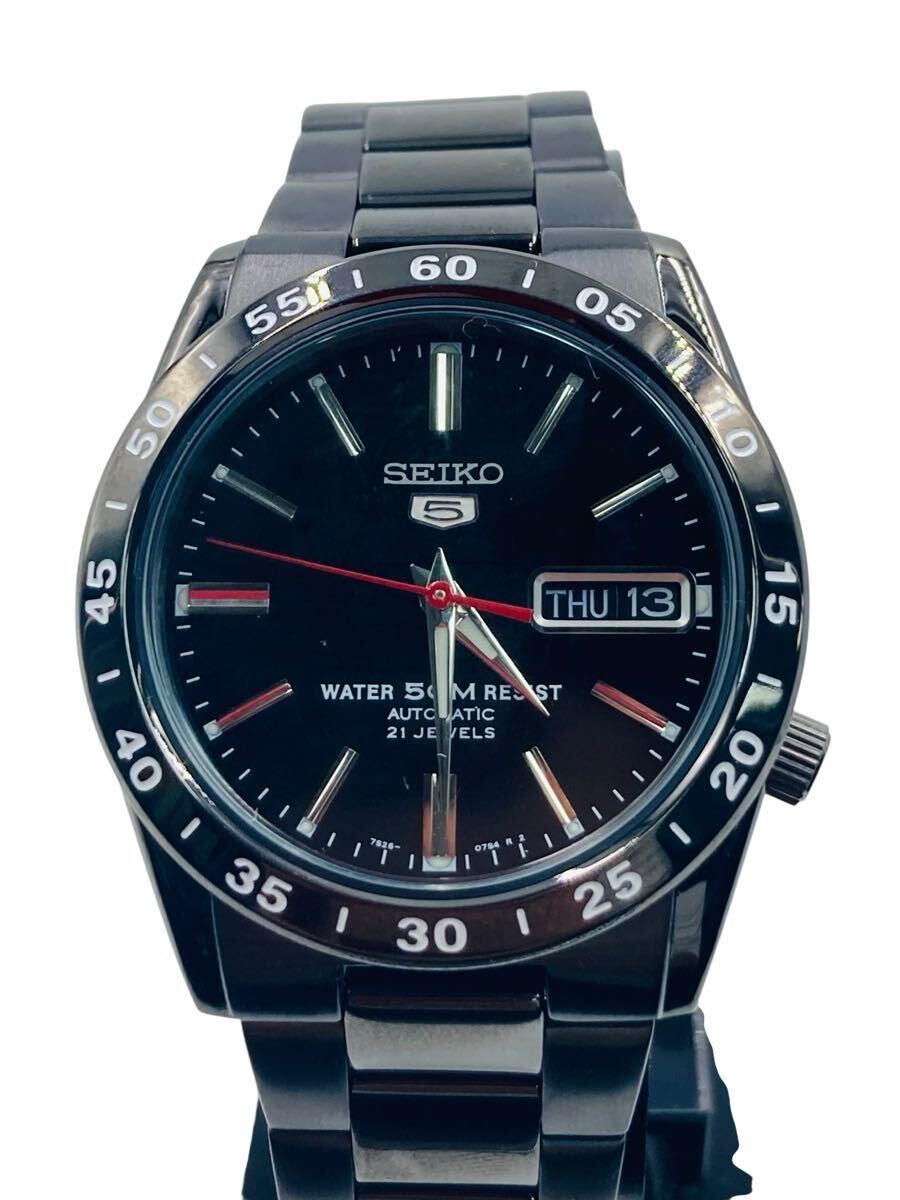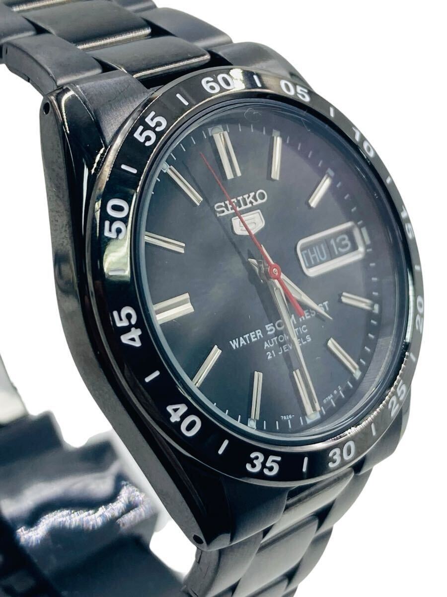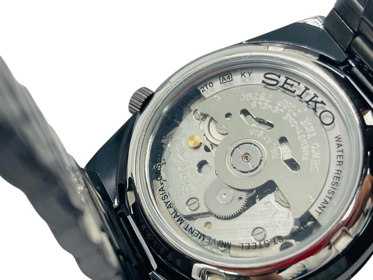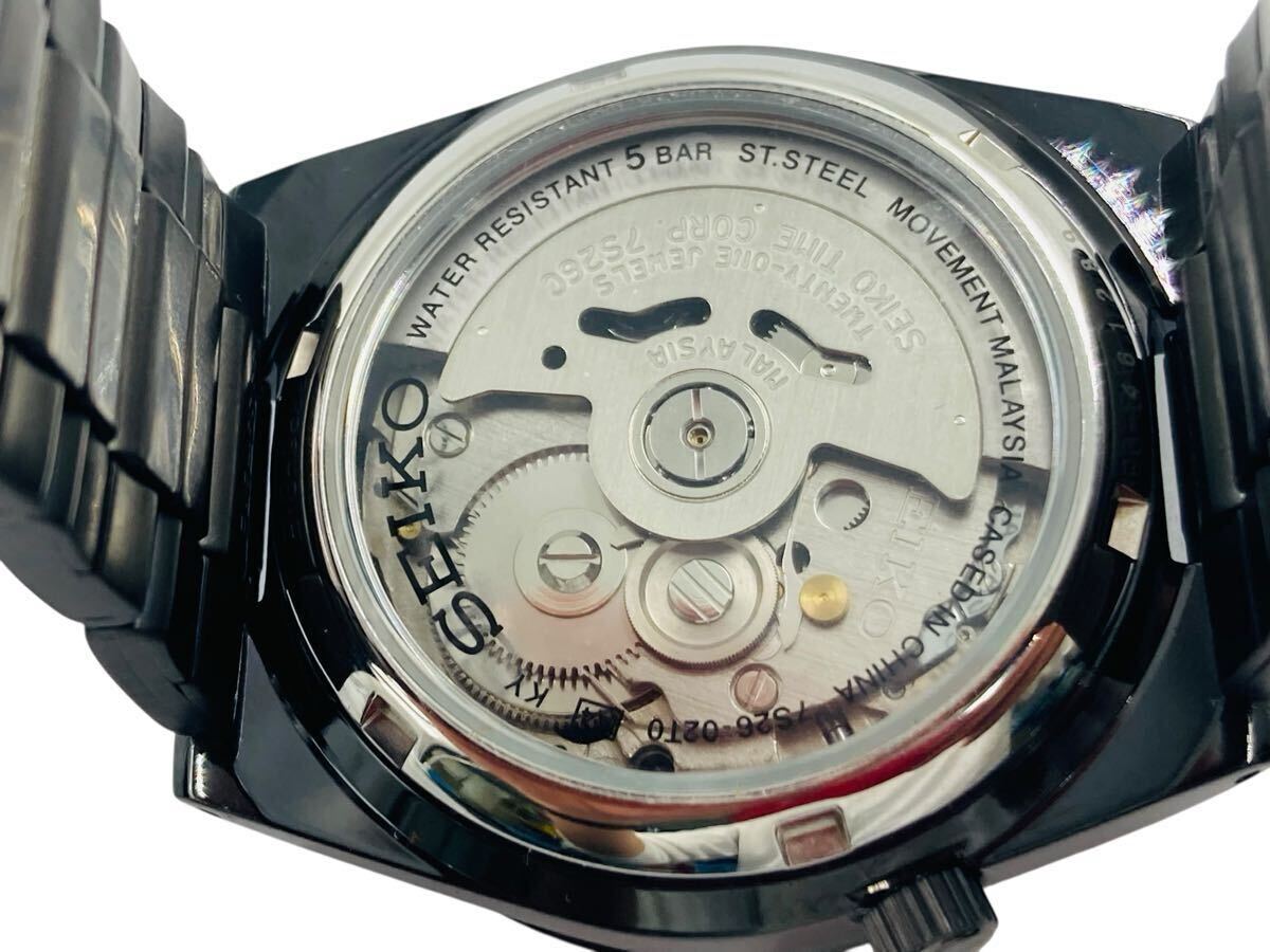 111072 稼働品 SEIKO セイコー5 7S26-02T0 デイデイト ブラック 自動巻き メンズ 腕時計 裏スケ スケルトン
