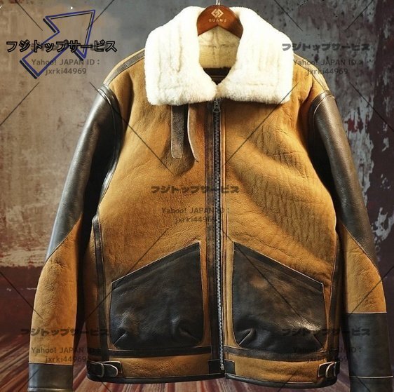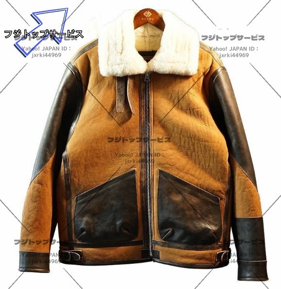 フライトジャケット ムートン 大戦モデル 羊革 シープスキン 本革 毛皮一体 天然革 メンズファッション コート ブルゾン S~5XL