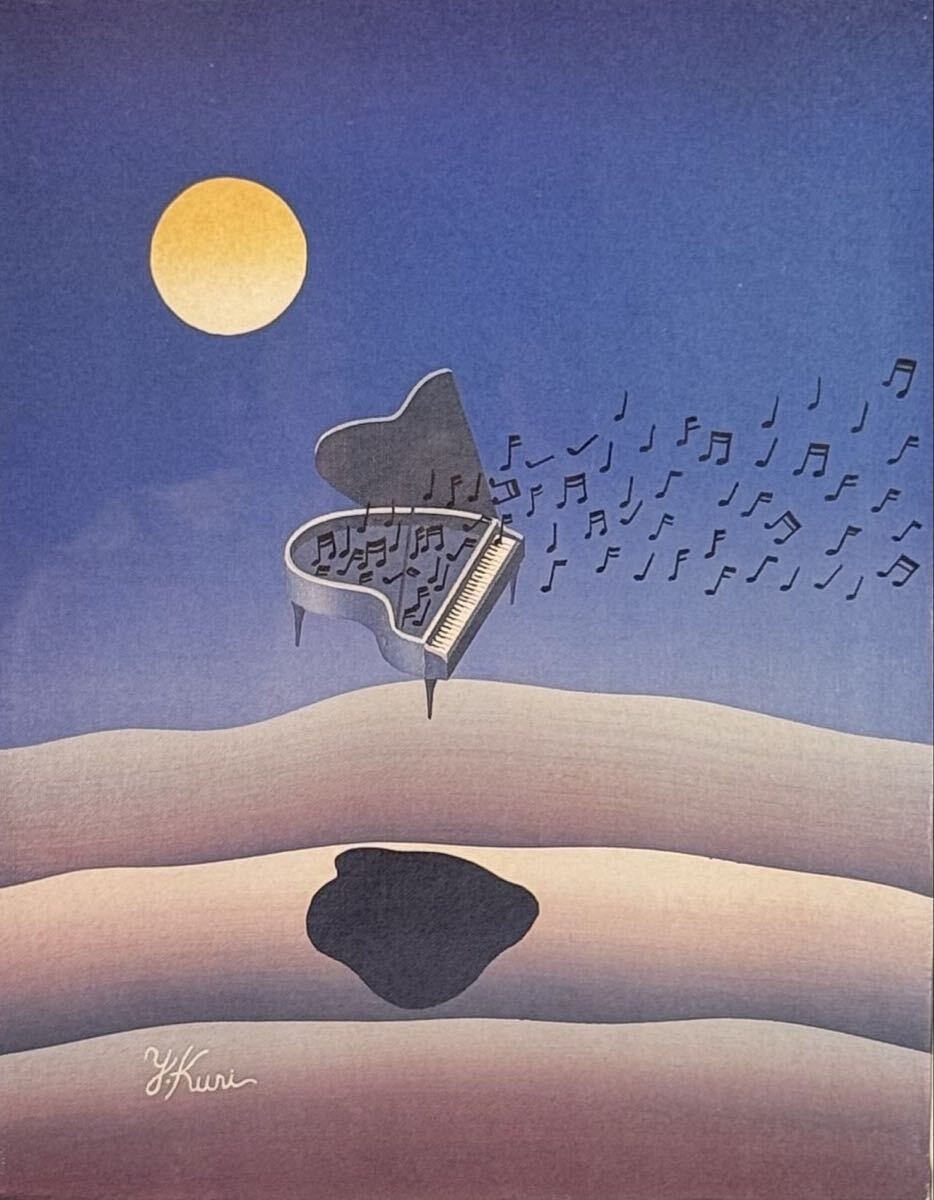 久里洋二(1928-2024)は福井県鯖江市出身の漫画家・アニメーション作家・画家。京都市美術学校を受験するも進学を断念し、1950年に上京後、共同通信社で風刺漫画を描きながら文化学院美術科で学ぶ。1955年より二科展に出品し、1958年には特選を受賞。1960年からアニメーション制作を開始し、『二匹のサンマ』『切手の幻想』などを手がけ、1962年には『人間動物園』でヴェネツィア映画祭青銅賞を受賞し国際的評価を得た。絵画では1970年代中頃より色彩のグラデーションと単純化された形態を用いたシュルレアリスム的な不思議な空間表現を確立した。