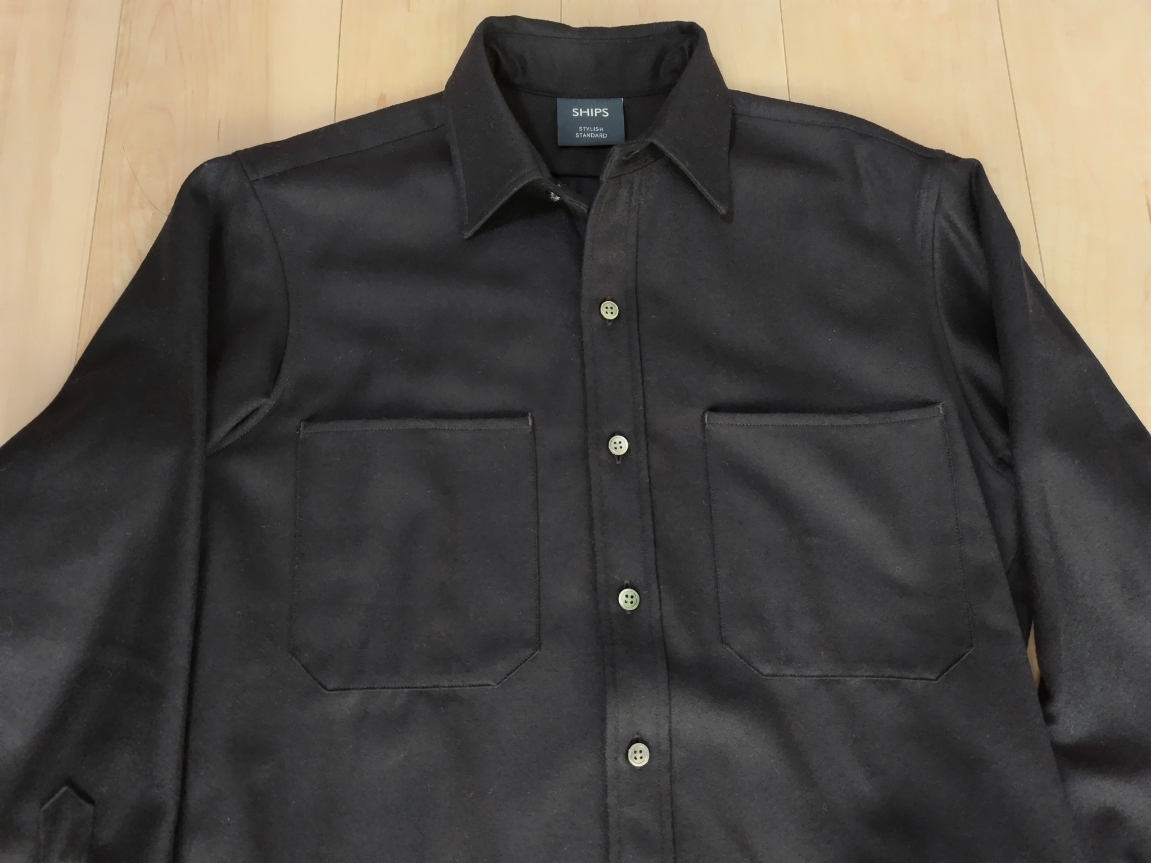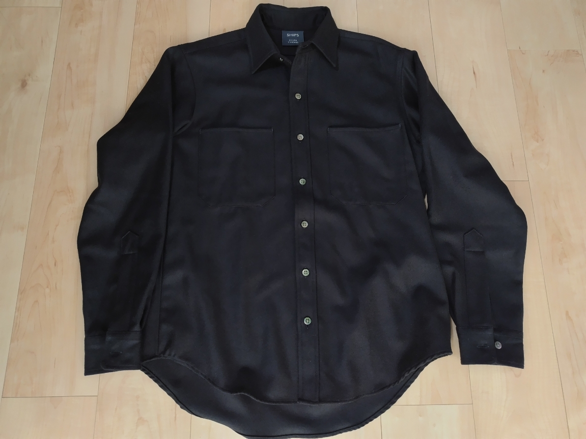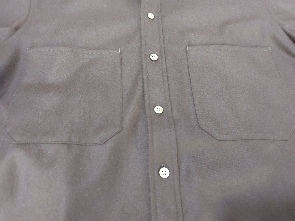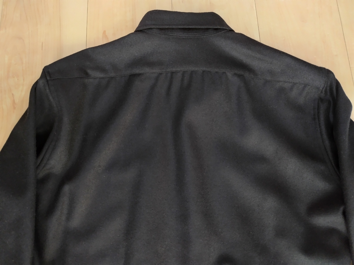 薄手で軽く、柔らかな手触りや、よく見ると斜めに織模様が入っているのが特徴。独特の光沢、艶やかさで高級感のある素材です。<デザインストーリー> 「シャツジャケットの様に羽織りものとしても使える、新しいベーシックなイメージのレギュラーカラー。 ユーロミリタリーな雰囲気のダブルポケットのディテールで、