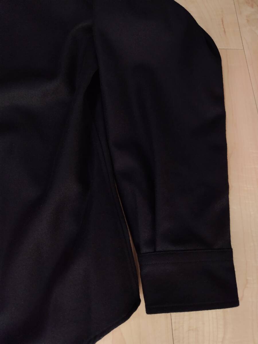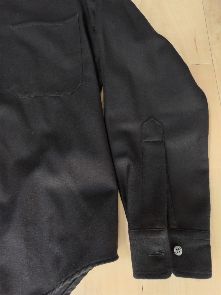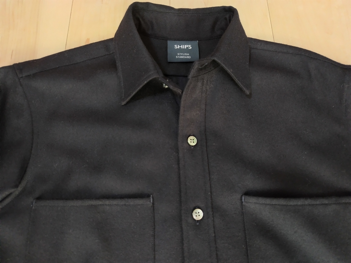 薄手で軽く、柔らかな手触りや、よく見ると斜めに織模様が入っているのが特徴。独特の光沢、艶やかさで高級感のある素材です。<デザインストーリー> 「シャツジャケットの様に羽織りものとしても使える、新しいベーシックなイメージのレギュラーカラー。 ユーロミリタリーな雰囲気のダブルポケットのディテールで、
