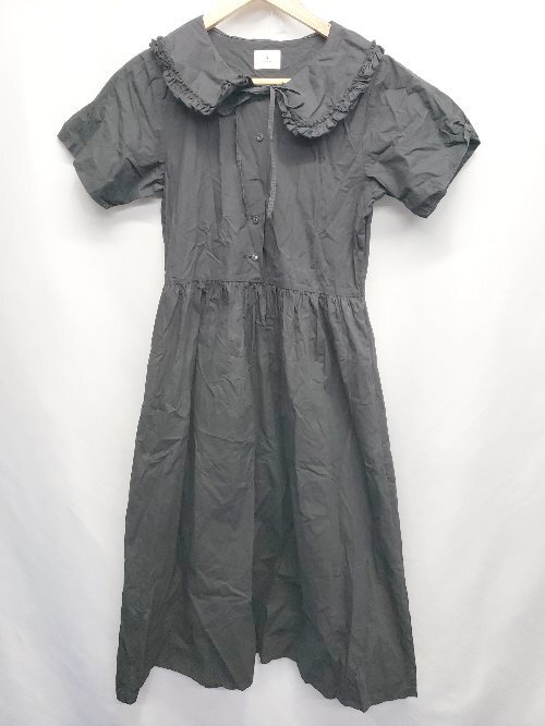 ◇ ⊂ merry jenny メリージェニー フリル 半袖 膝下丈 ワンピース サイズF ブラック レディース E