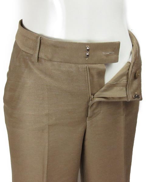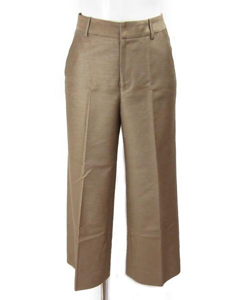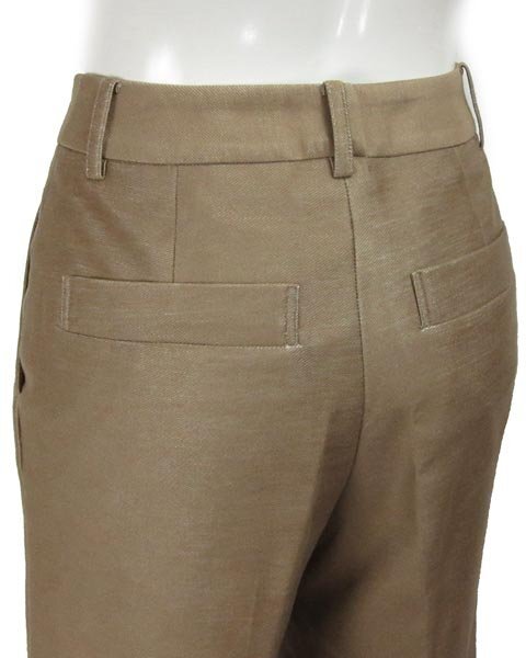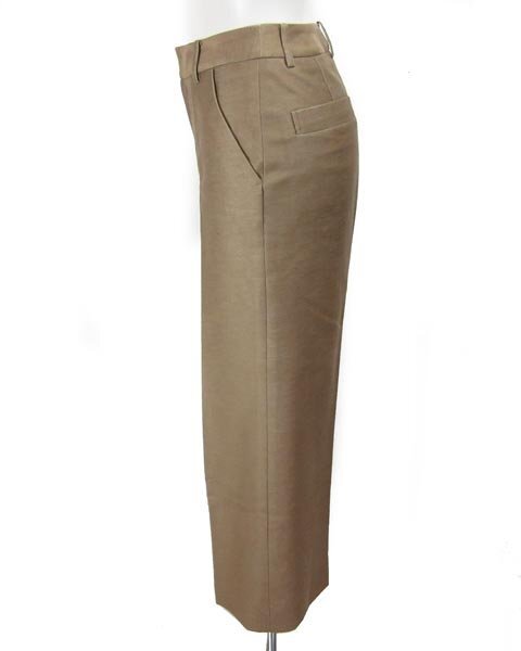 | 茶系カーキのシンプルなデザインのパンツ。秋口から春先まで活躍してくれます。はんぱ丈なので、パンプスやブーツなどオシャレが楽しめます。大人きれい目スタイルができます。 |