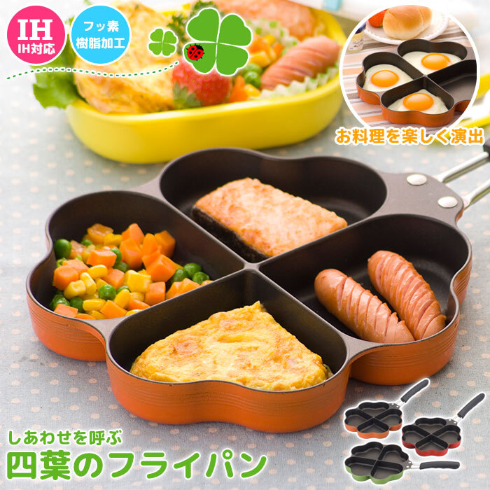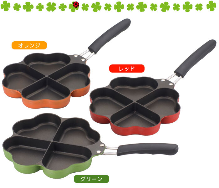 | ※【同シリーズ】のリンクは当店のヤフオク店のページへ進みます。 ● 四つ葉のフライパン IH対応 ※ガス火でもお使いいただけます。 ● 四つ葉のフライパン ガス火専用 ※IHではお使いいただけません。 ※このページは[IH対応 ※ガス火でもお使いいただけます。]を販売しております。 |