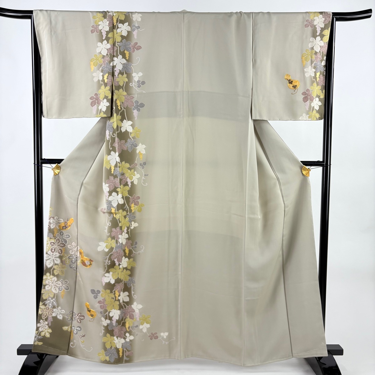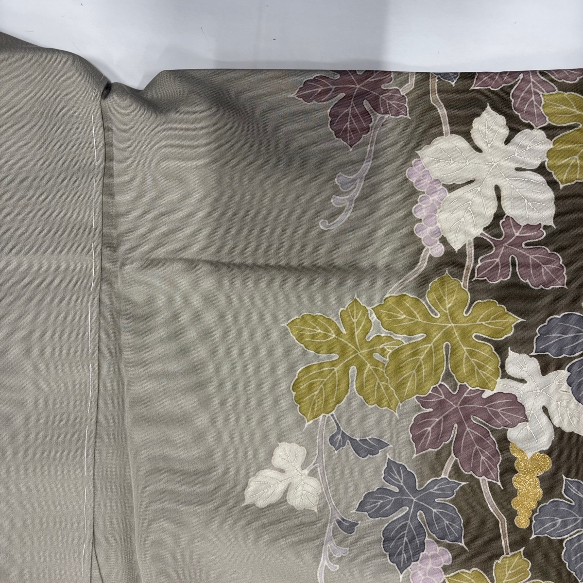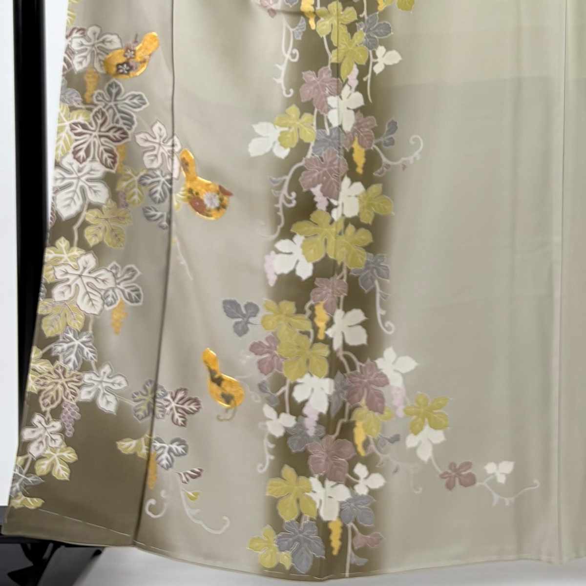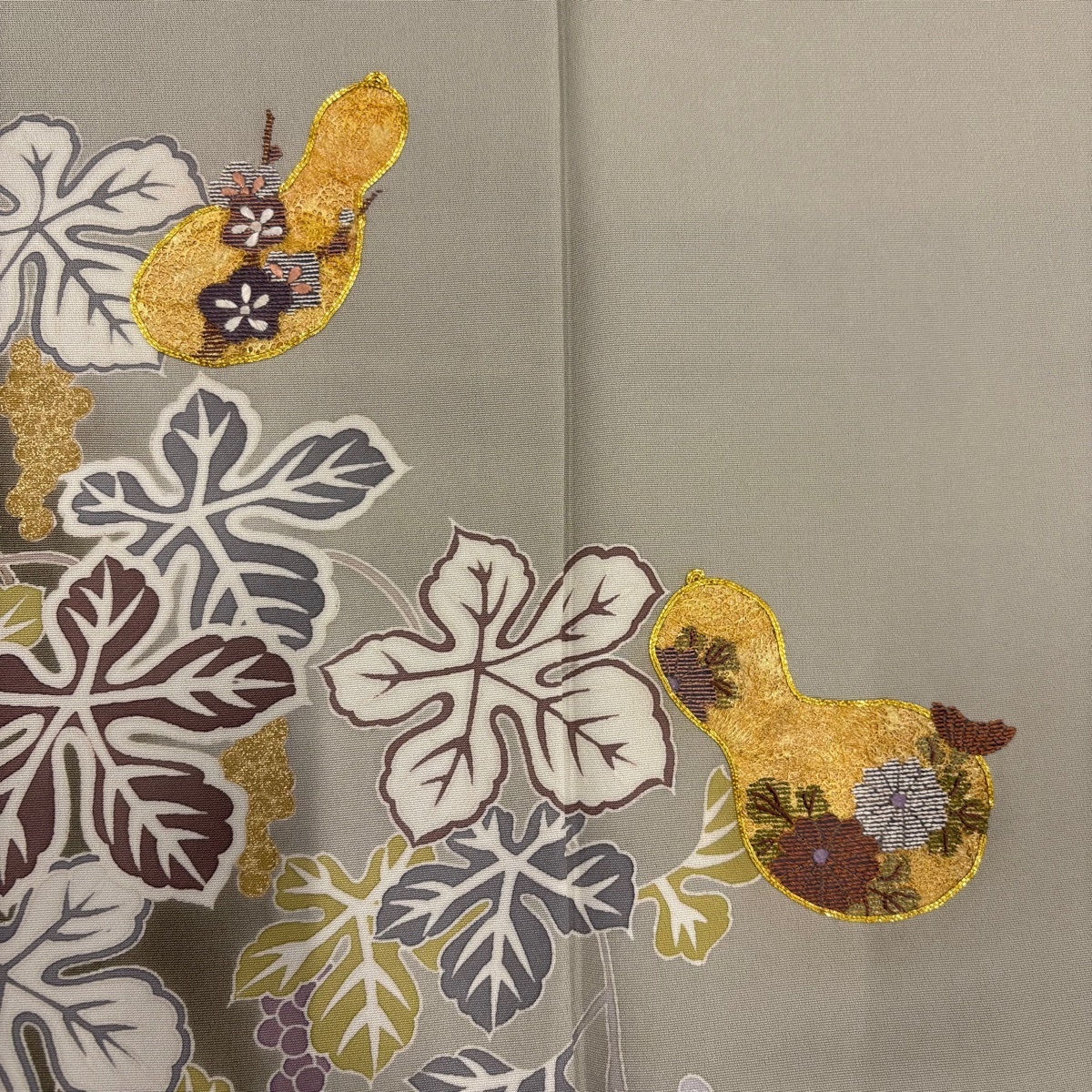 | 付下げ 名品 やまと 瓢箪 葡萄唐草 金糸 金彩 灰緑 袷 身丈160 裄丈65.5 M 正絹 【中古】 |