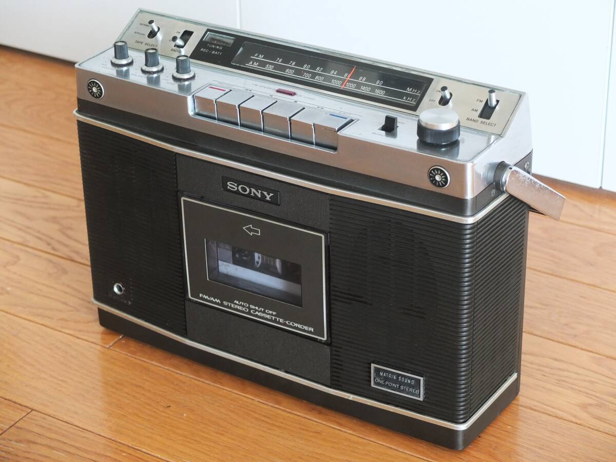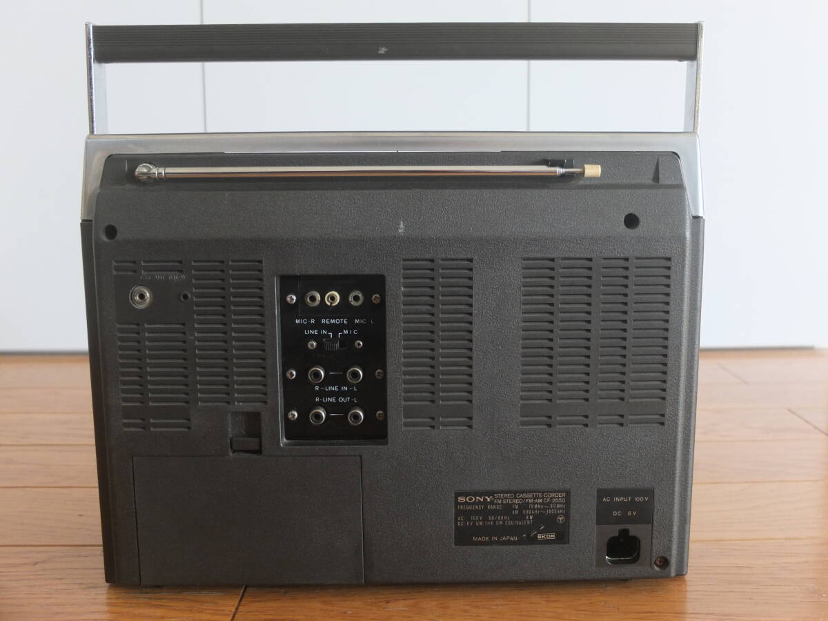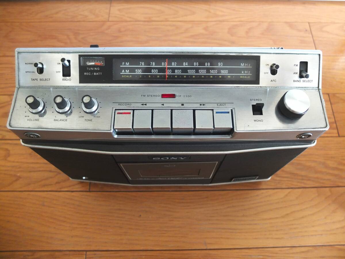 1972年頃のSONYステレオラジカセCF-2550のジャンク品です、通電しラジオも受信しますが左チャンネルの音が変です、テープは動作しますが音は出ません