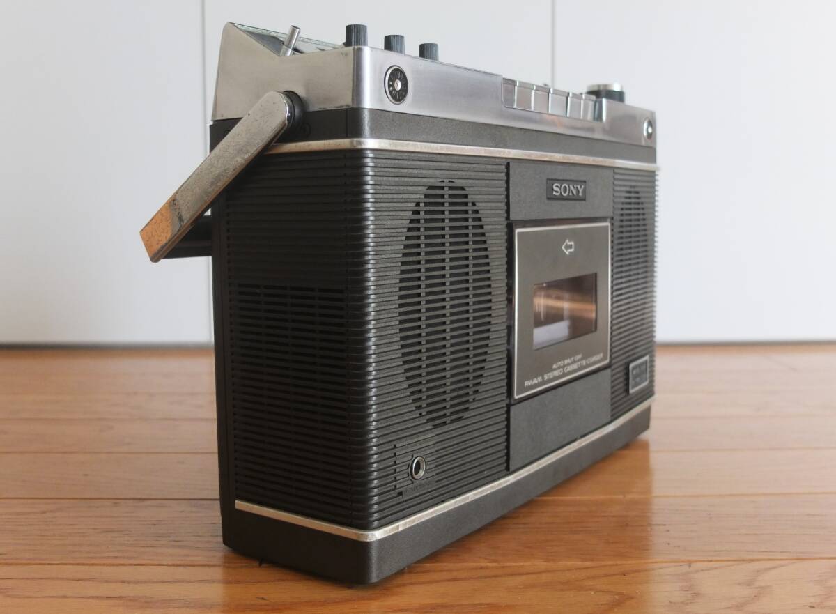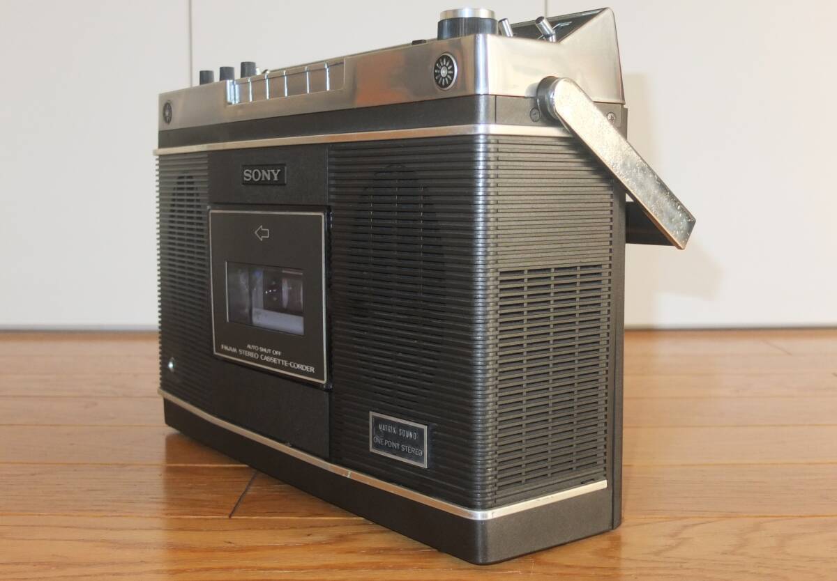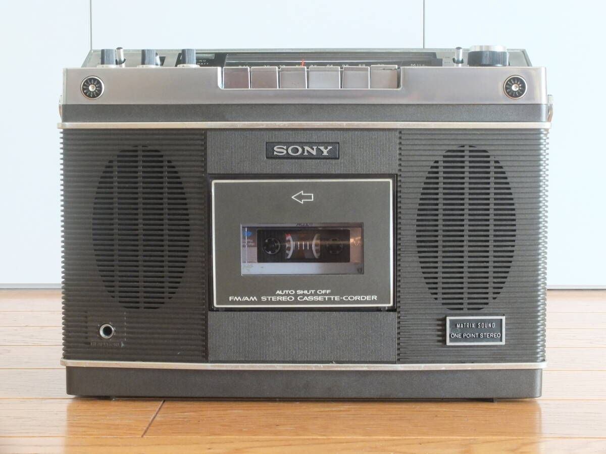 1972年頃のSONYステレオラジカセCF-2550のジャンク品です、通電しラジオも受信しますが左チャンネルの音が変です、テープは動作しますが音は出ません