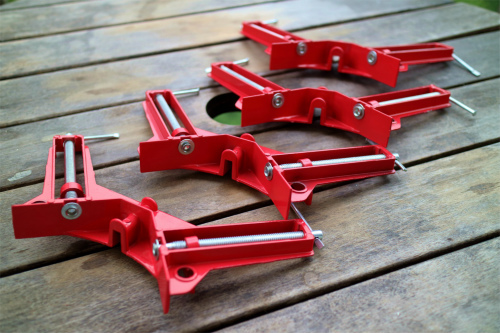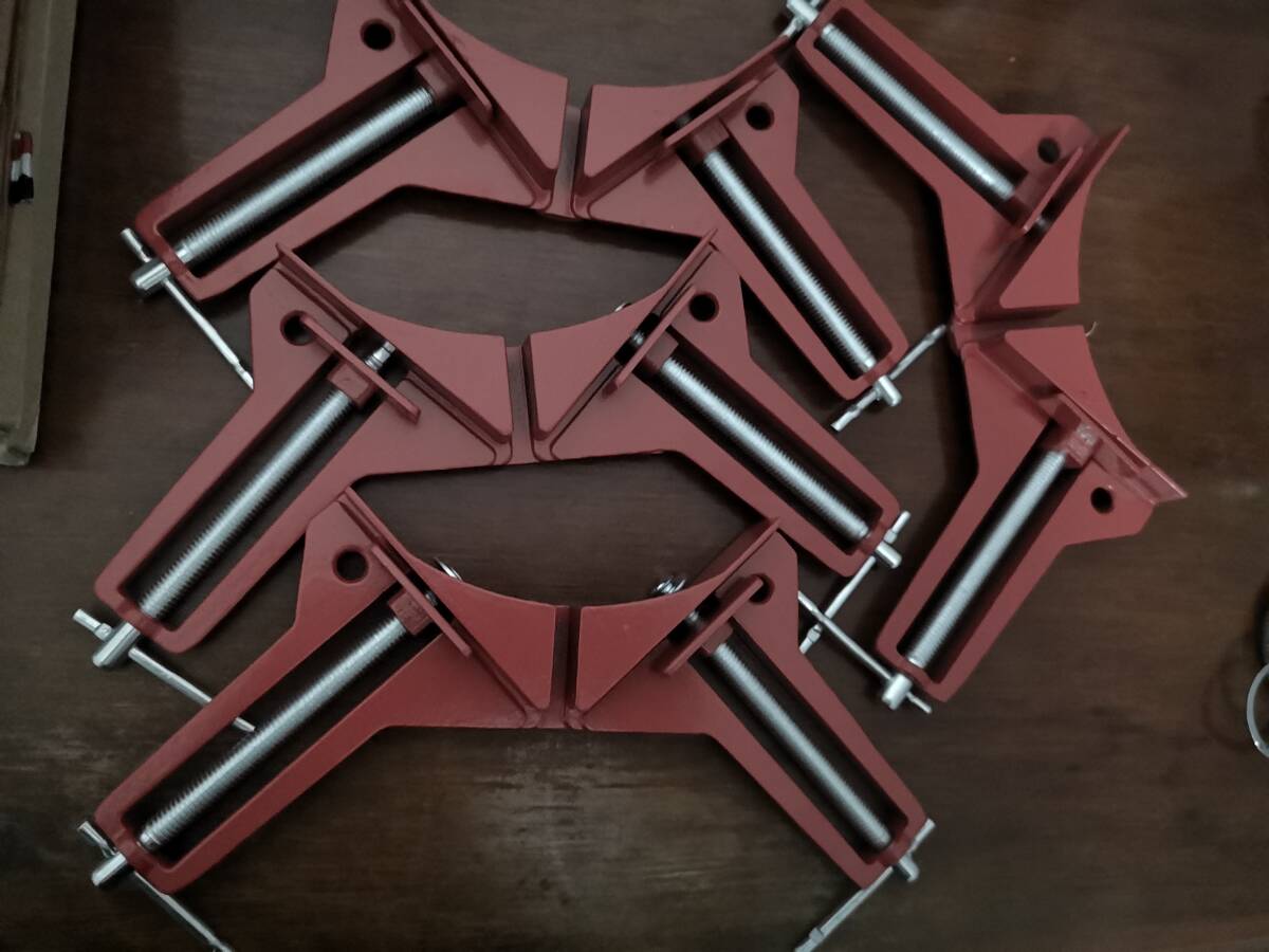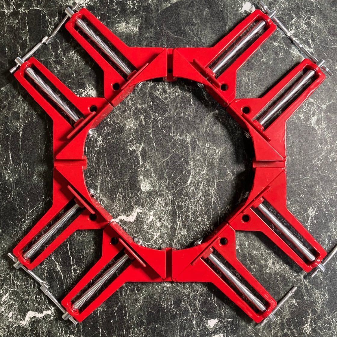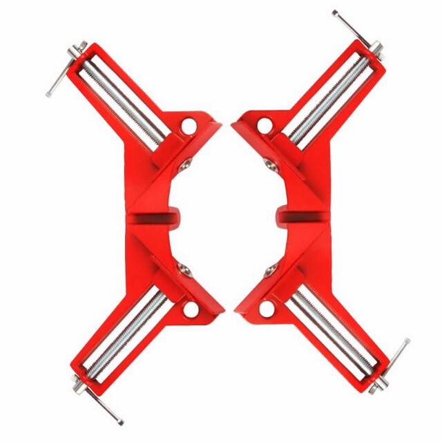 DIYや木工作業に欠かせないコーナークランプ4個セットです。直角に固定したい2つの材料を1人でもカンタンに固定できるよう、補助をしてくれる工具です。