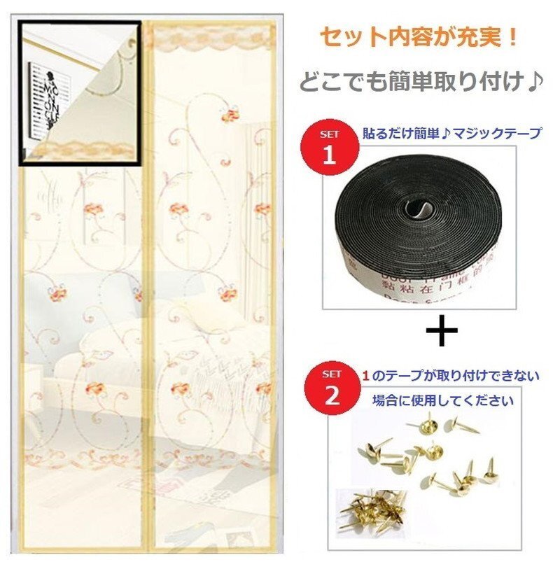 1スタ☆貼るだけ☆どこでも設置OK!網戸カーテン 90cm×200cm マグネット 蚊 害虫 マジックテープ 目隠し 虫よけ ネット I-045