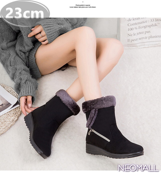 レディース スノーシューズ 【956】 ブラック 23.0cm ムートンブーツ スニーカー ウィンターブーツ 裏起毛 防水 防寒 防滑 冬用靴 綿靴