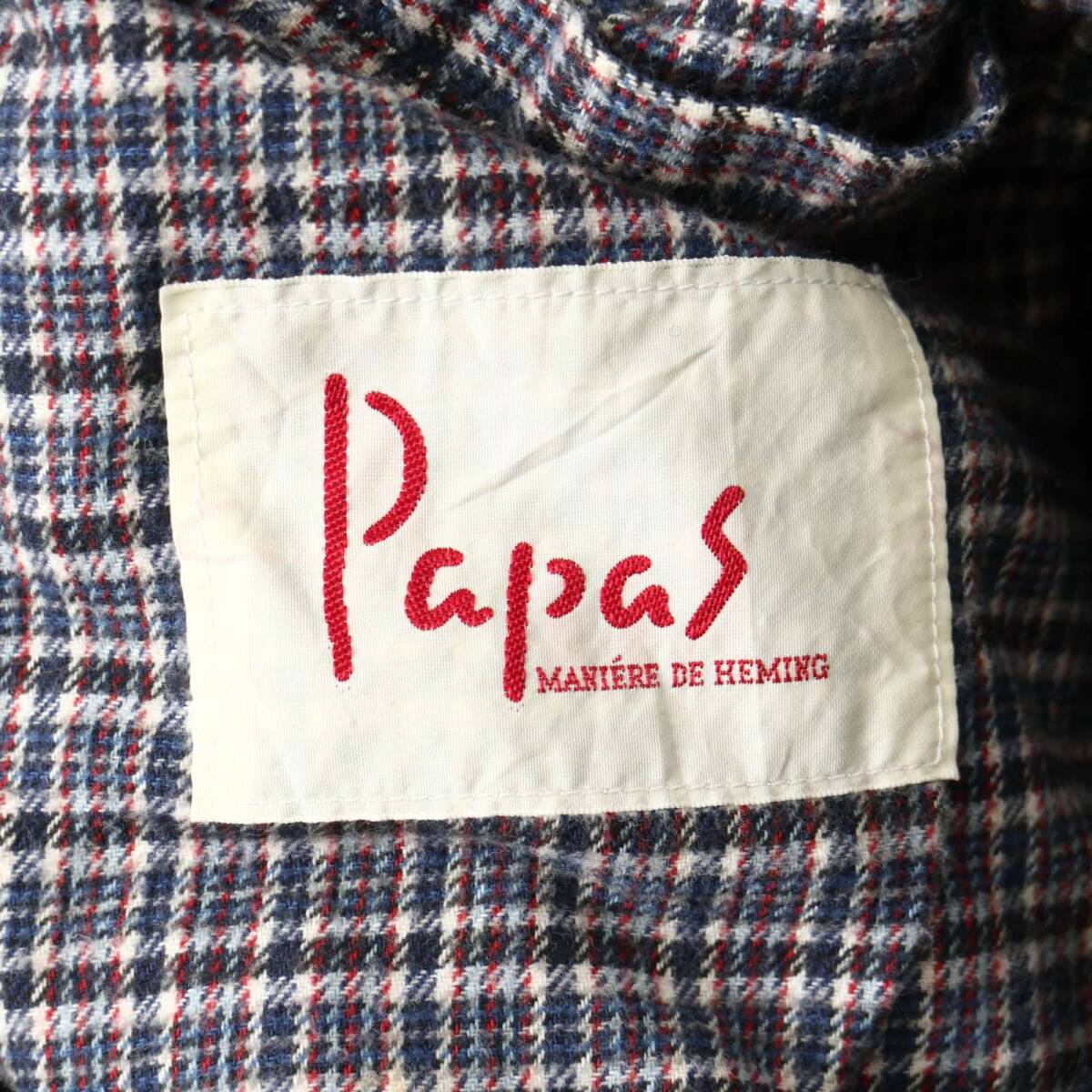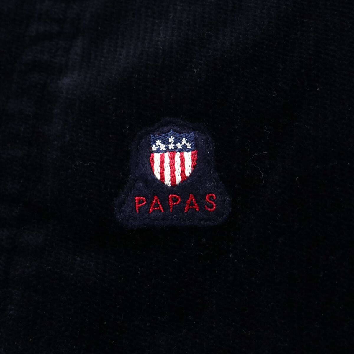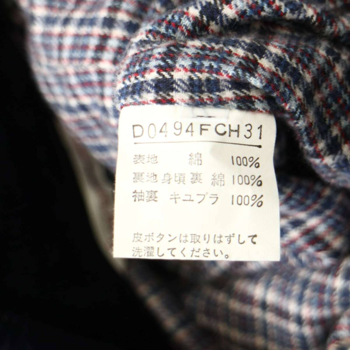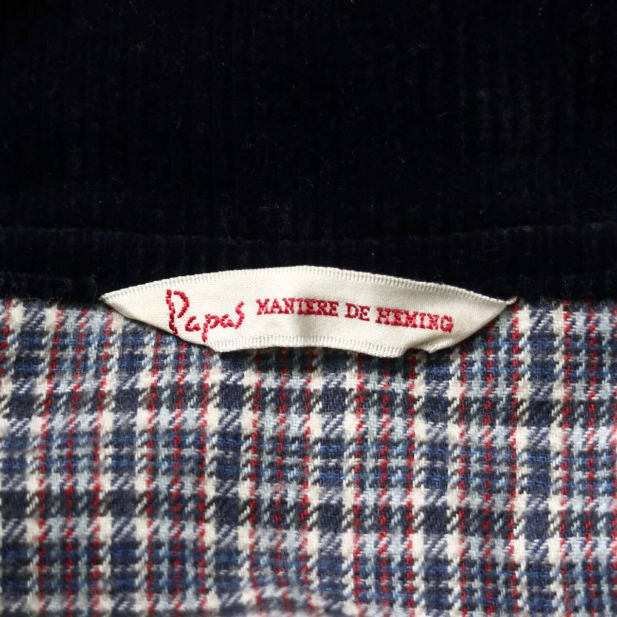 Papas パパス 秋冬 ロゴ ワッペン★ 裏地チェック柄 コーデュロイ フーデッド コート Sz.M メンズ 黒 日本製