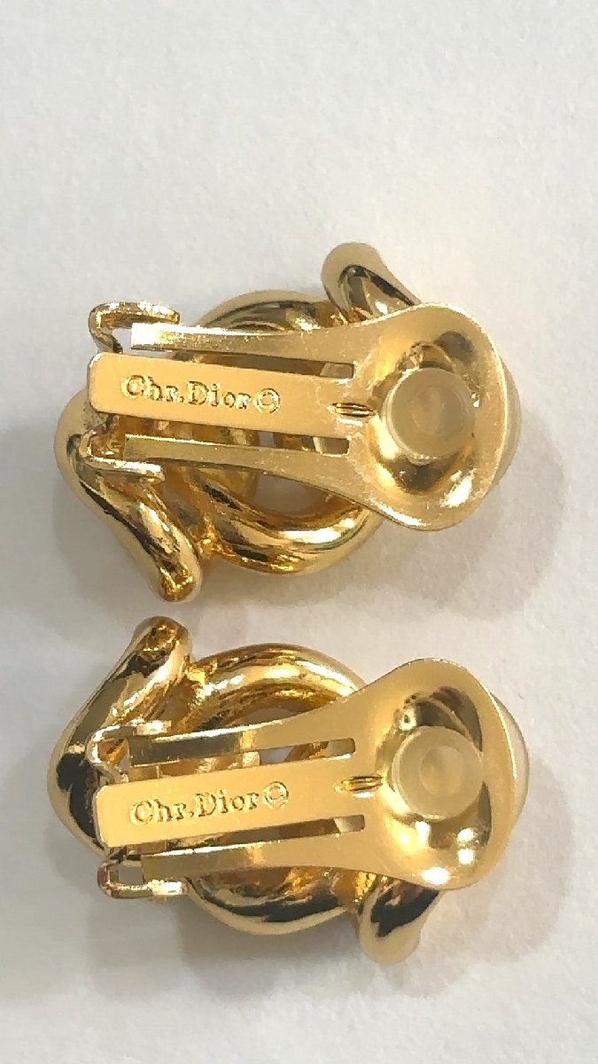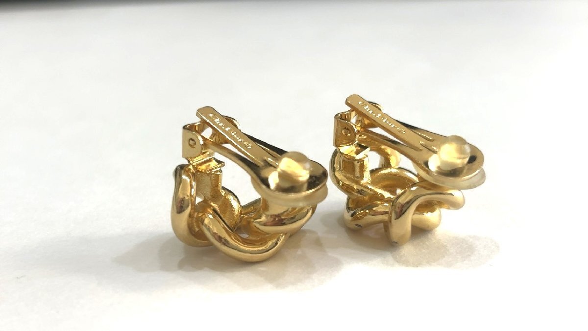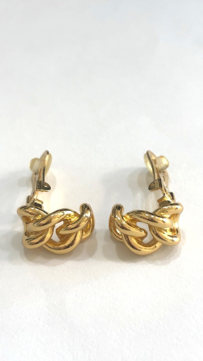 美品 クリスチャン・ディオール Christian Dior ゴールドカラー イヤリング 3連 チェーンモチーフ