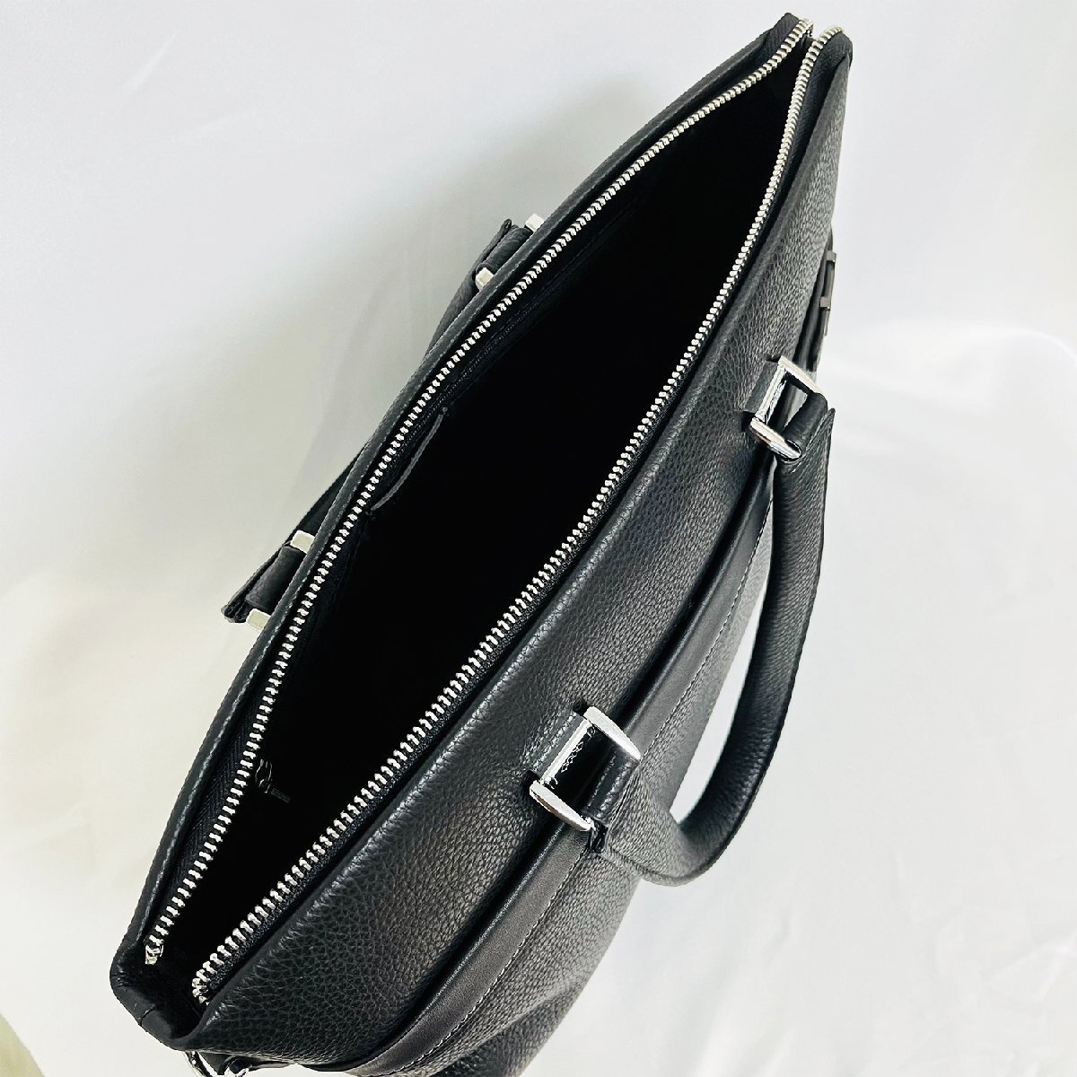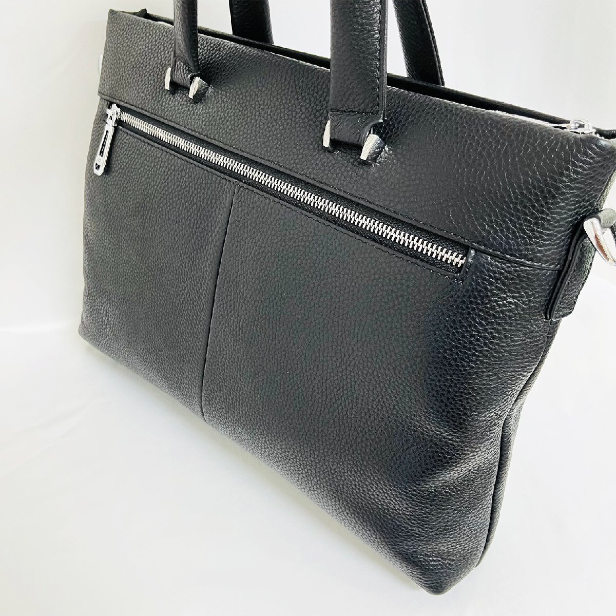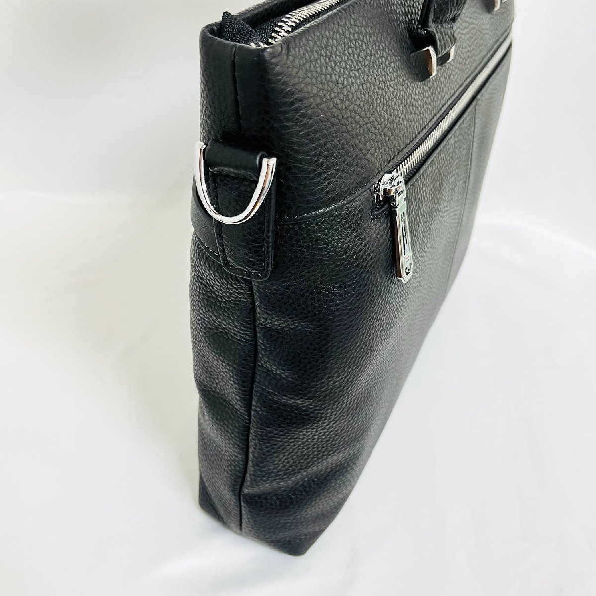現代のビジネスシーンにおいて必要十分なものを収納でき、都会的なデザインに仕上げました。薄さにこだわりマチ幅6cmのスリムに仕上げました。内側にはノートPCが収納可能なベルクロ付きのフラップ型のオープンポケット。クッションが効いていて大切なPCをしっかりと守ります。外側にはファスナーポケットを配置。サッと取り出せる形状なのでハンカチやメモ帳を入れるのも良いです。ハンドルは耐久性があり、常に持ち鞄の中でも負担のかかるところだからこそ、つくりにこだわりました。強度もありつつ握りやすさも追及しました。さらに、付属のショルダーベルトでショルダースタイルになり、両手が楽々。気分によって使い分ける事が出来る一つで二度おいしいバッグです。自転車に乗るとき、他の荷物があるときに重宝します。