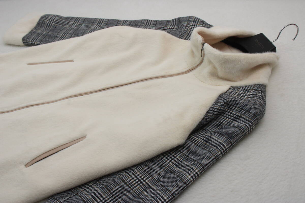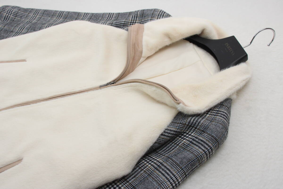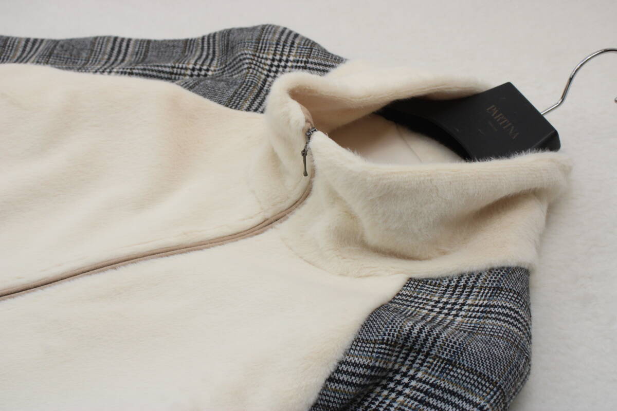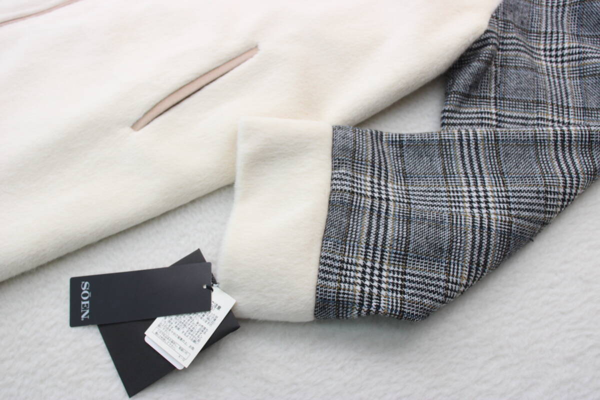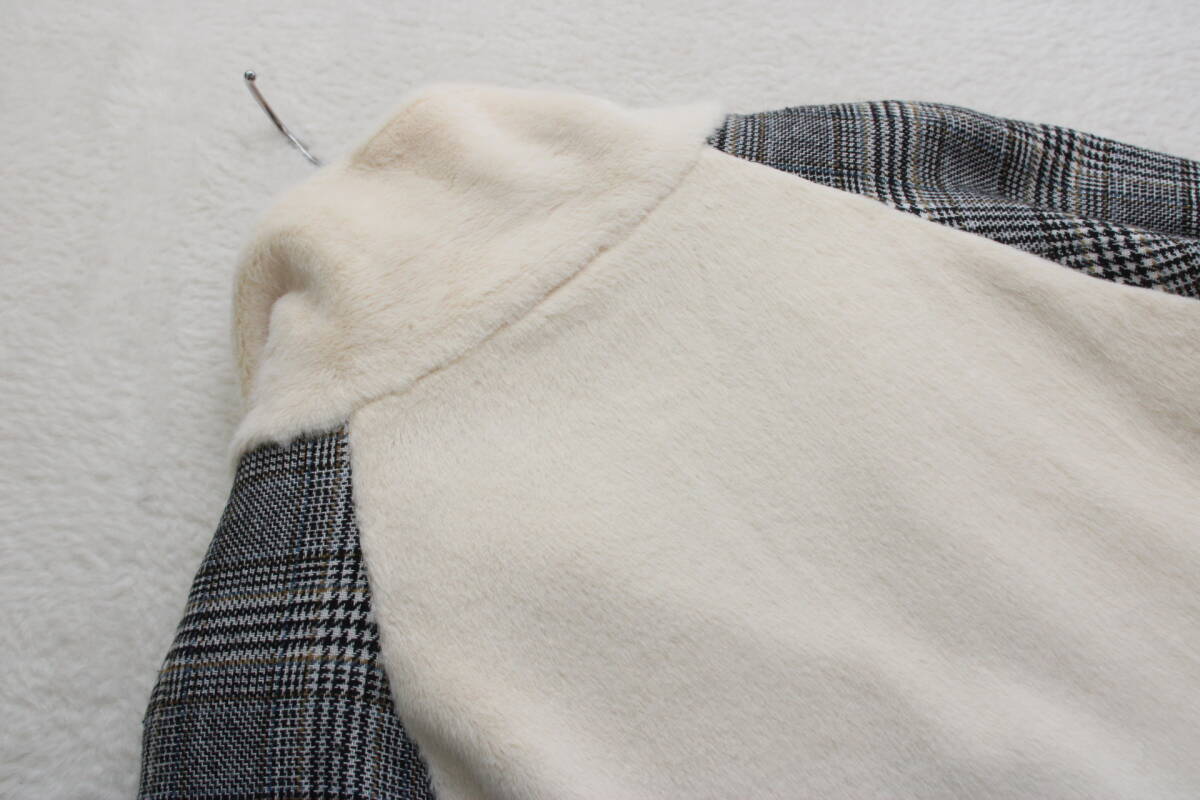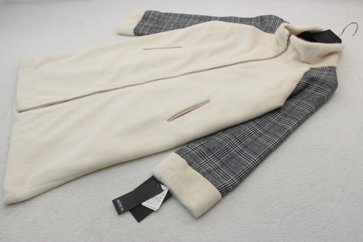 6722 新品タグ付き ウール混チェック×ボア切替ZIPコート 40サイズ 定価¥42,900税込み