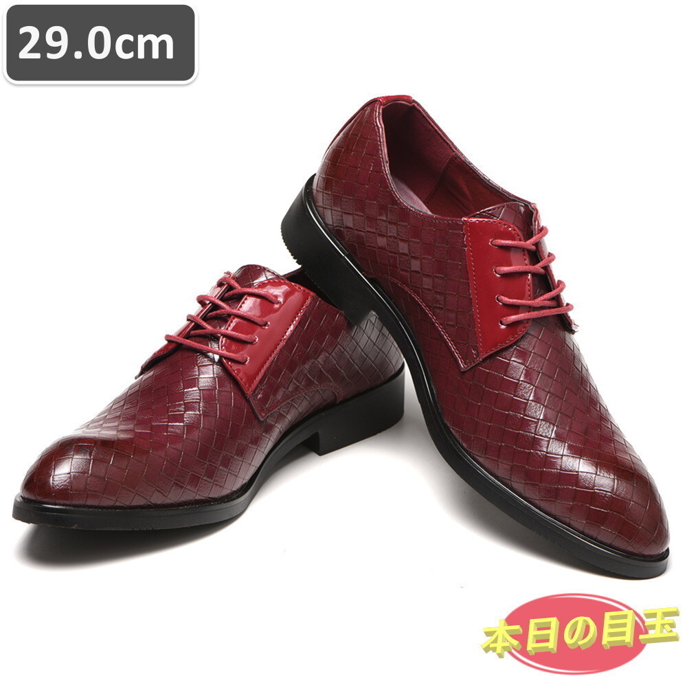 1円~ ☆ メンズ ビジネス レザー シューズ レッド サイズ 29.0cm 革靴 靴 カジュアル 屈曲性 通勤 軽量 仕事 【612】