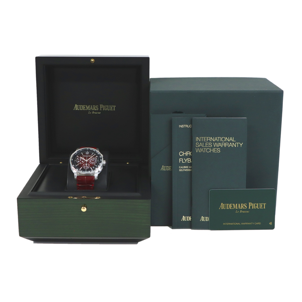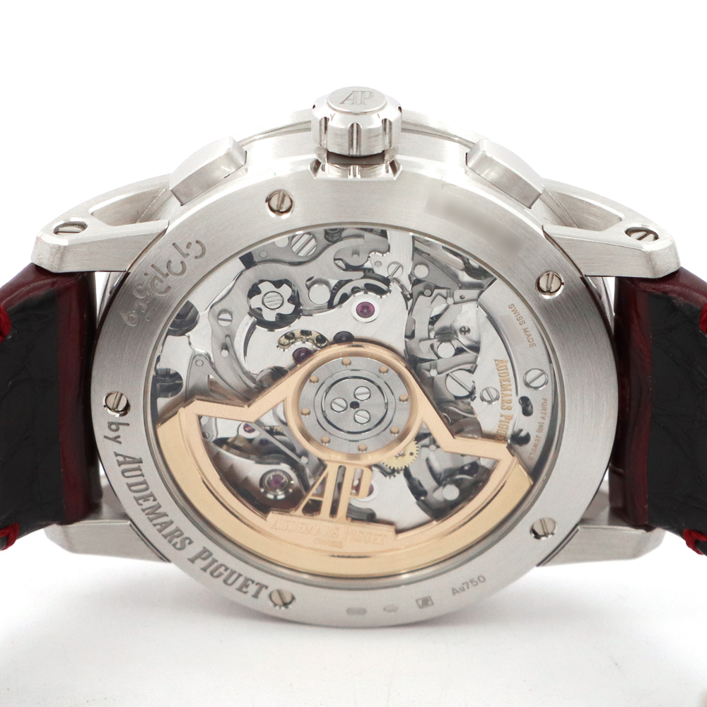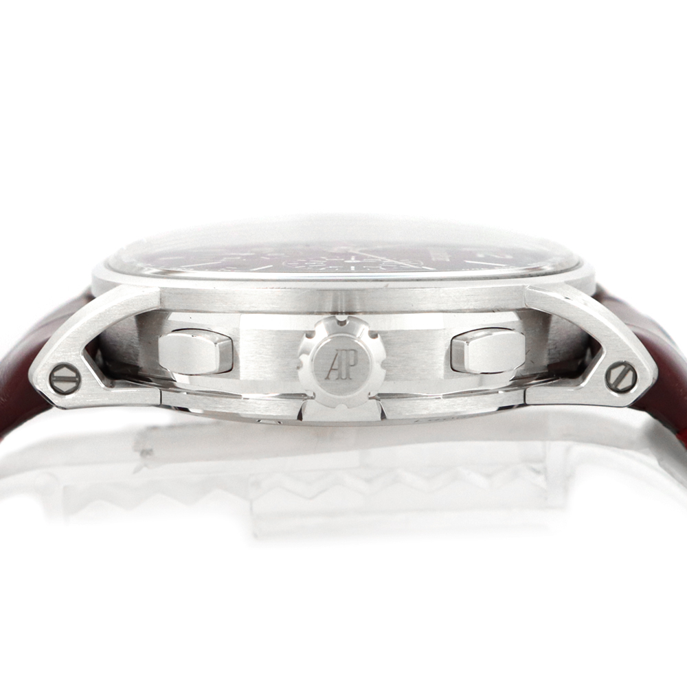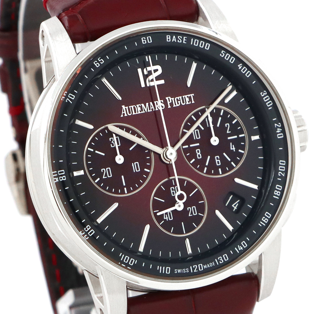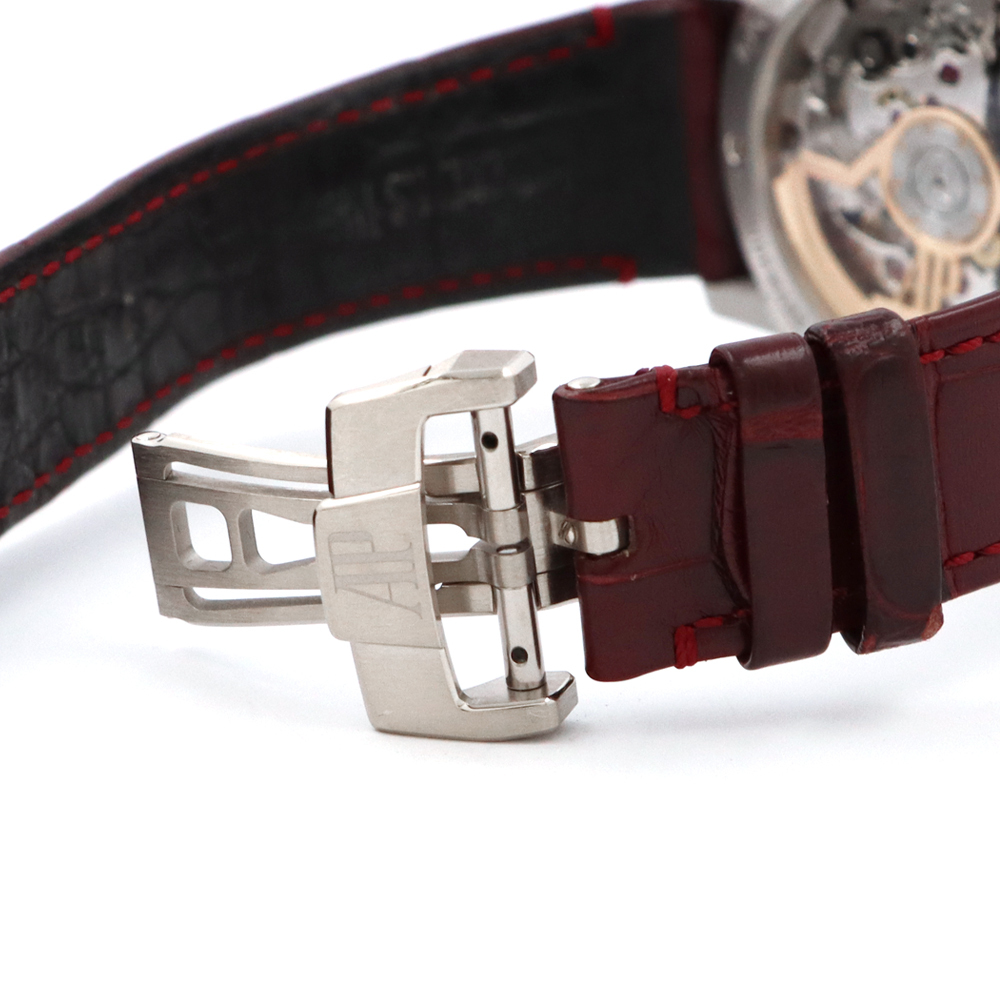 ストラップ:バーガンディアリゲーターストラップ、、18Kホワイトゴールド製フォールディングバックル