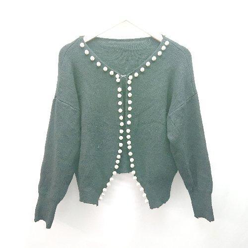 ◇ solleim ソルレム パール キレイめ ゆったりめ かわいい 長袖 カーディガン サイズM ブラック レディース E