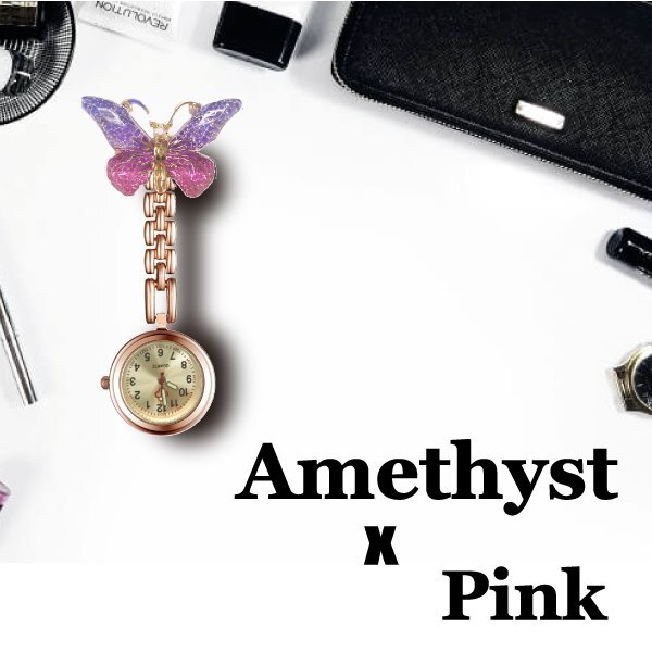 ナースウォッチ 蝶々 ピンクゴールド クリップ付き