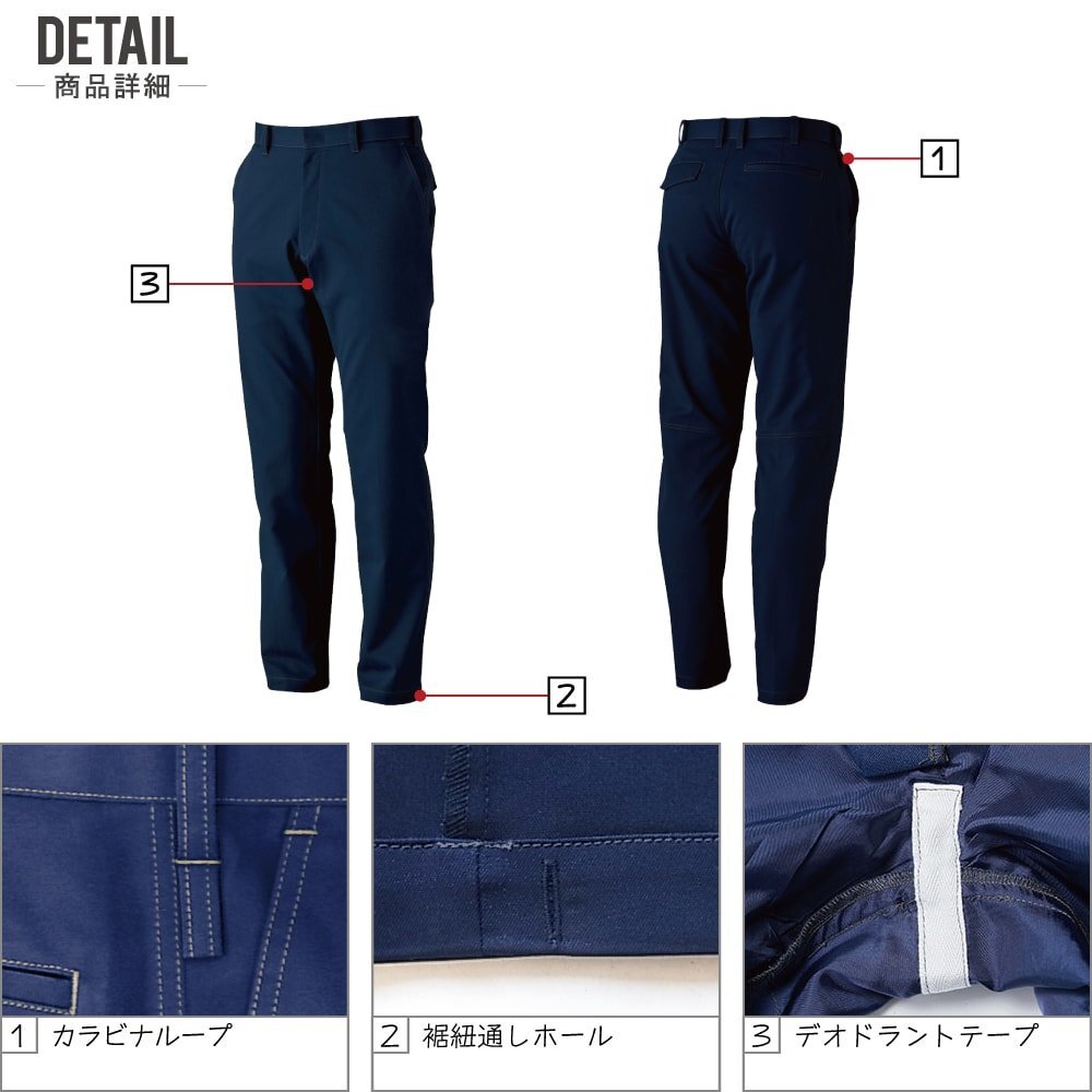 特長:制電性素材/タフ素材/ストレッチ/消臭/イージーケア
