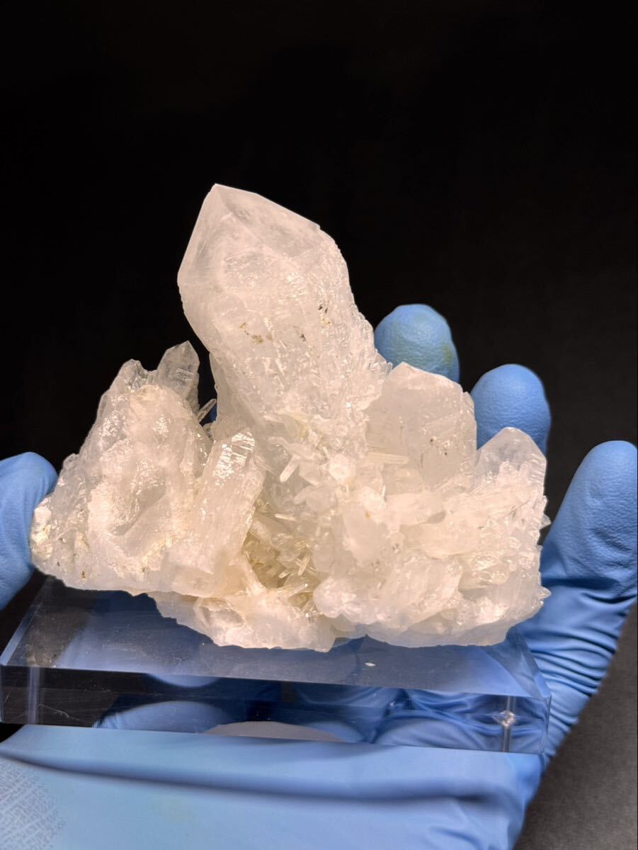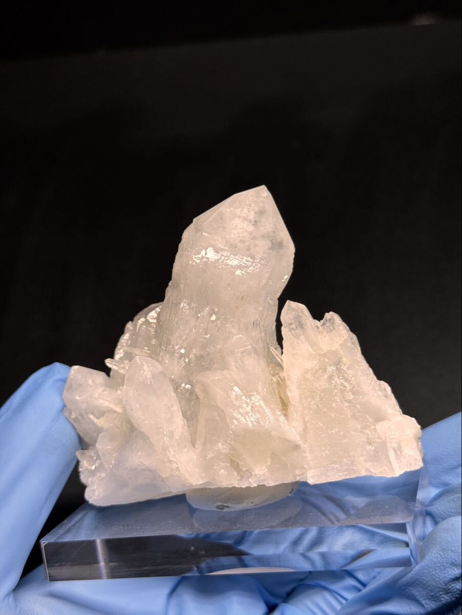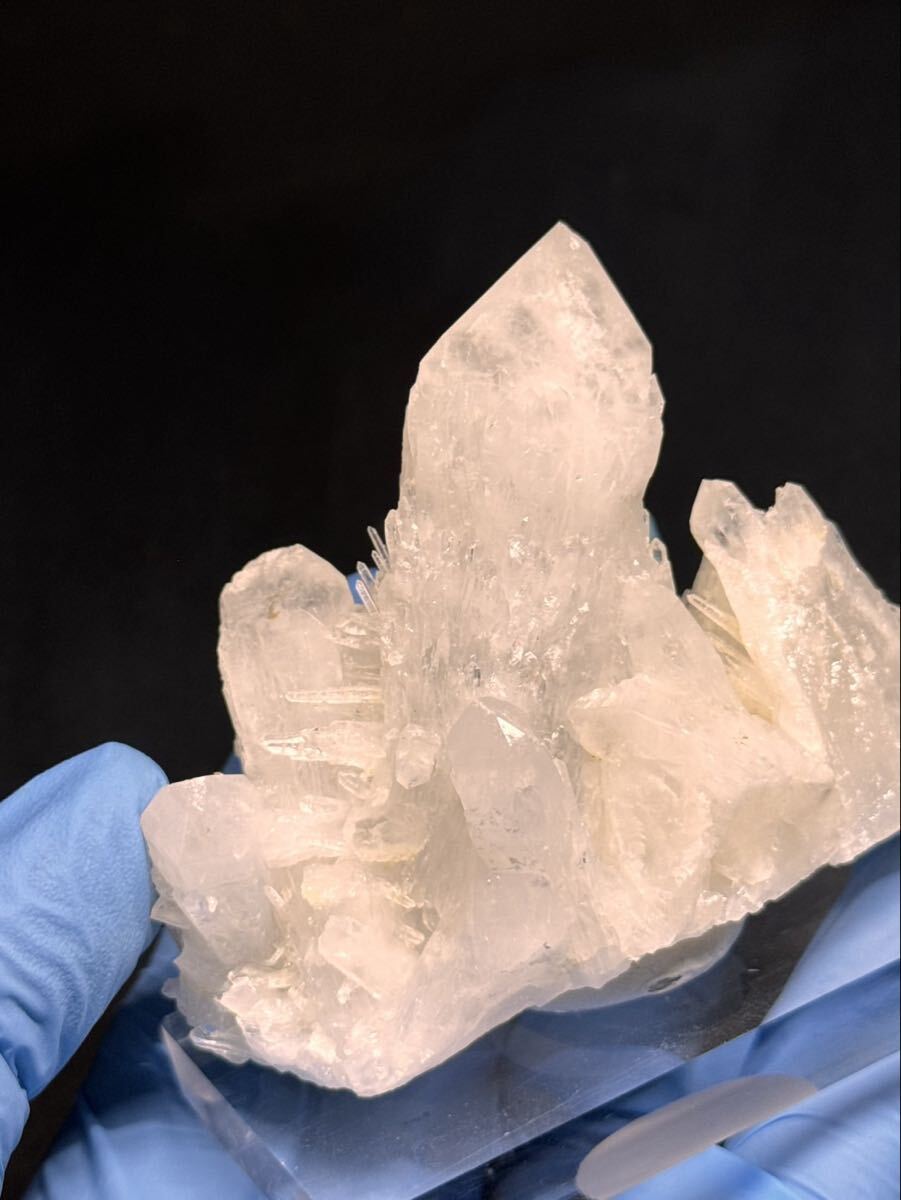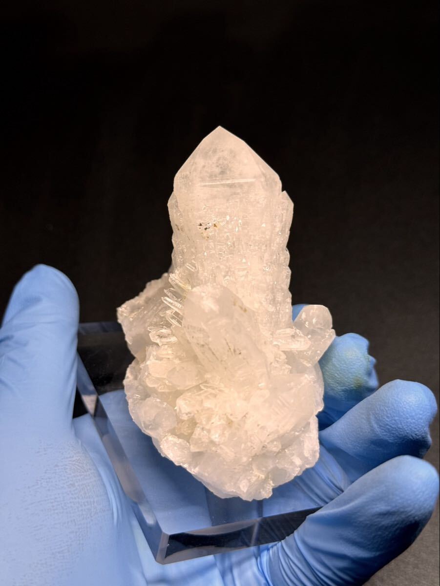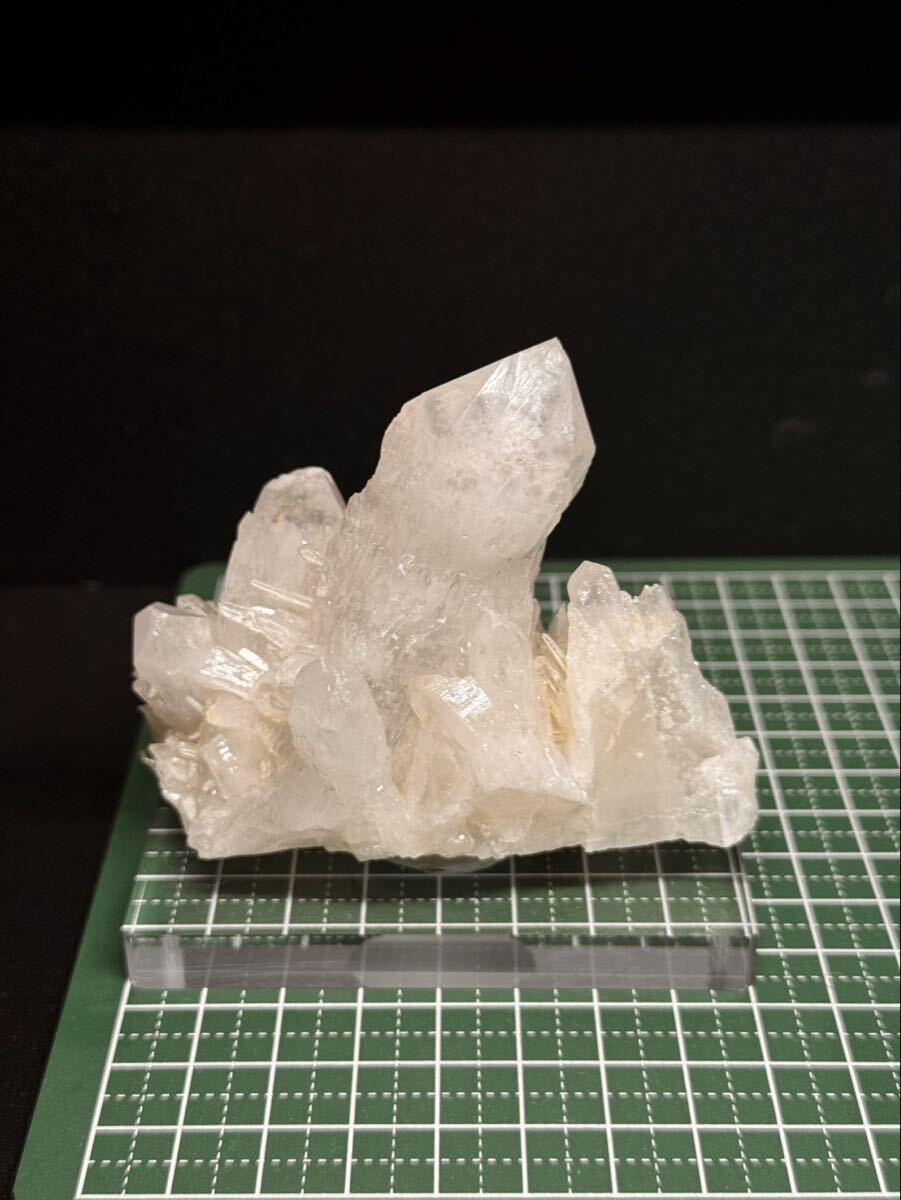 岐阜県恵那市山岡町の日本式双晶付き水晶クラスターです。(産地ラベル,アクリル付き。)