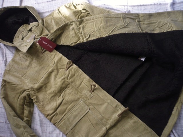半額以下★PETIT PETIT★裏ボアコーデュロイダッフルコート DOGロゴ刺繍 極厚 大判ポケット