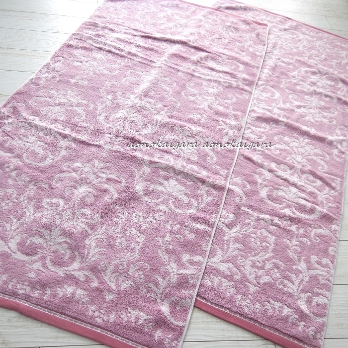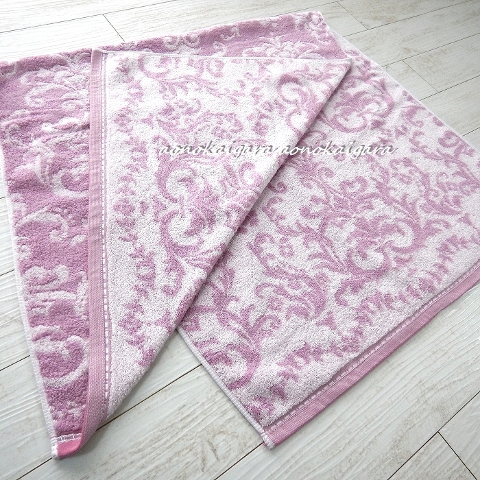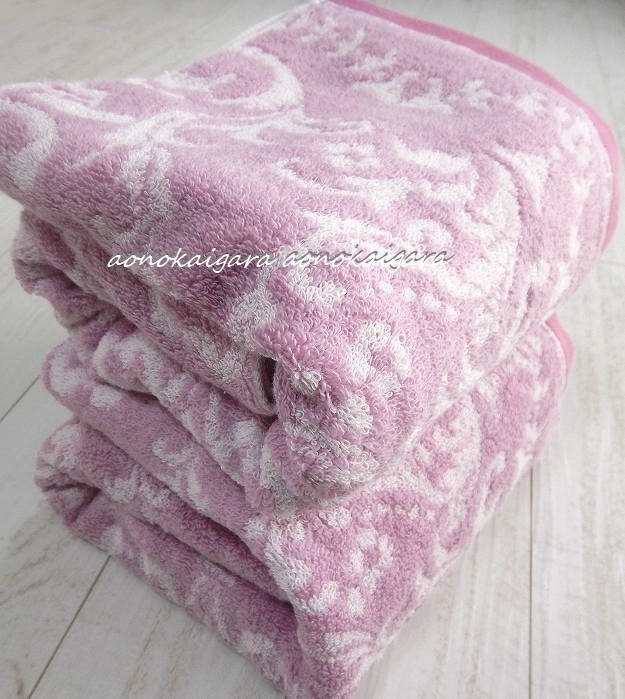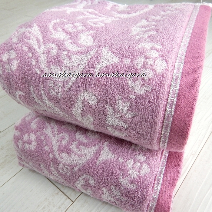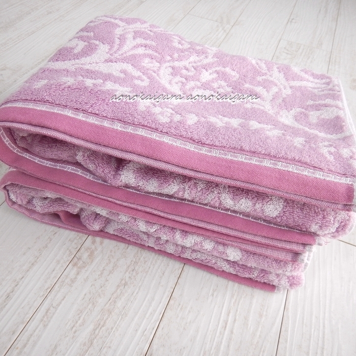 新品◆今治産◆高級綿◆無撚糸◆上品◆豪華◆ふわふわ◆柔らか◆ダマスク◆バスタオル2枚◆パープル系