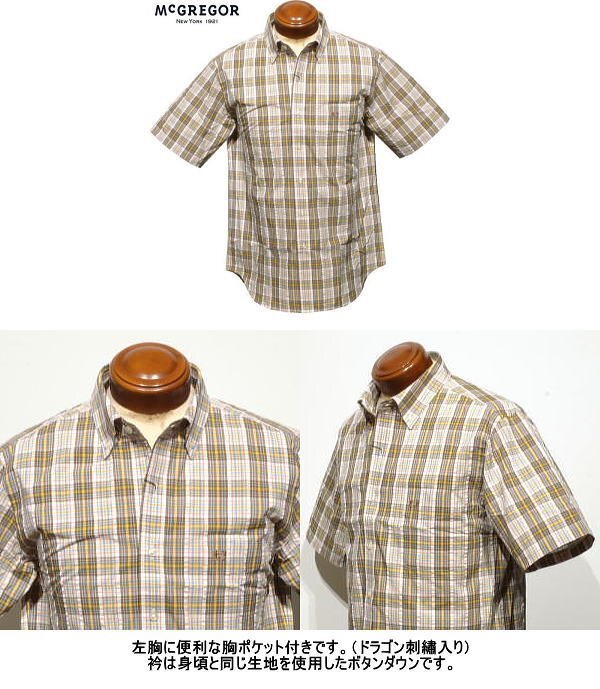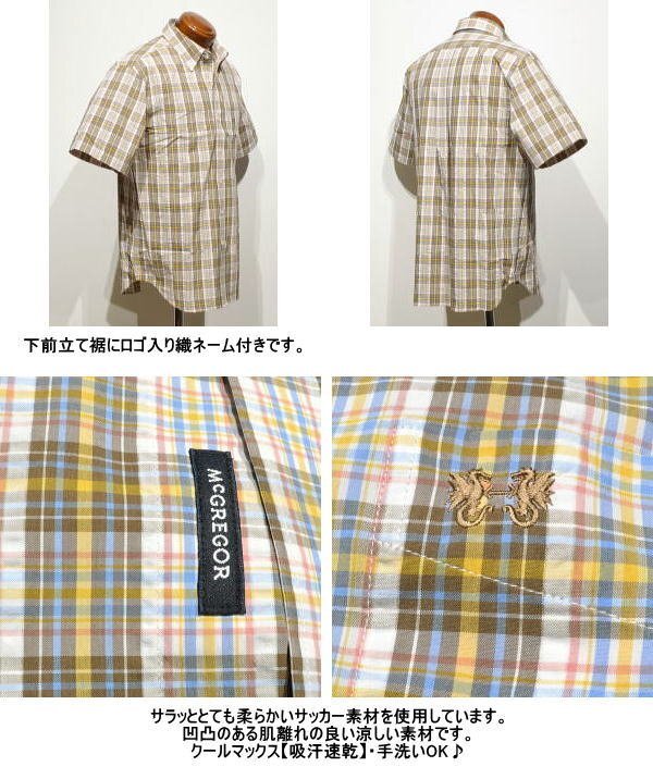 【ブラウンカーキ M】 マクレガー ボタンダウン半袖シャツ メンズ 111164101 サッカー素材 クールマックス 吸汗速乾 半袖シャツ mcGREGOR