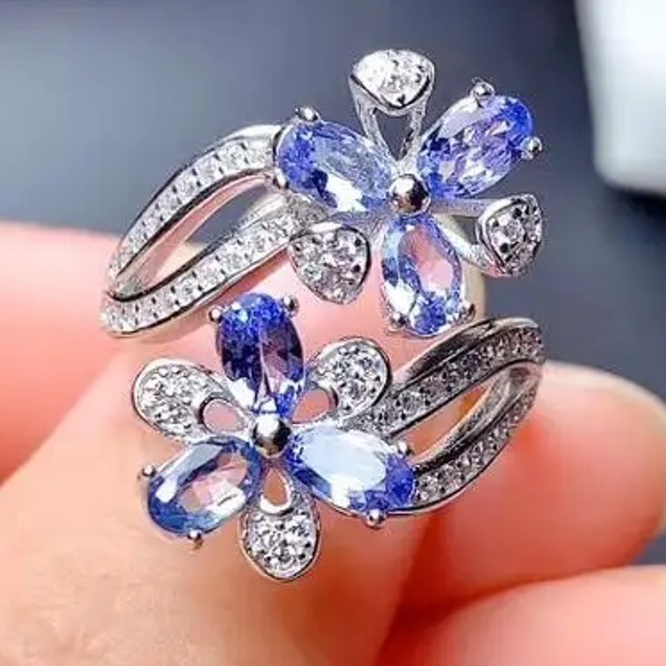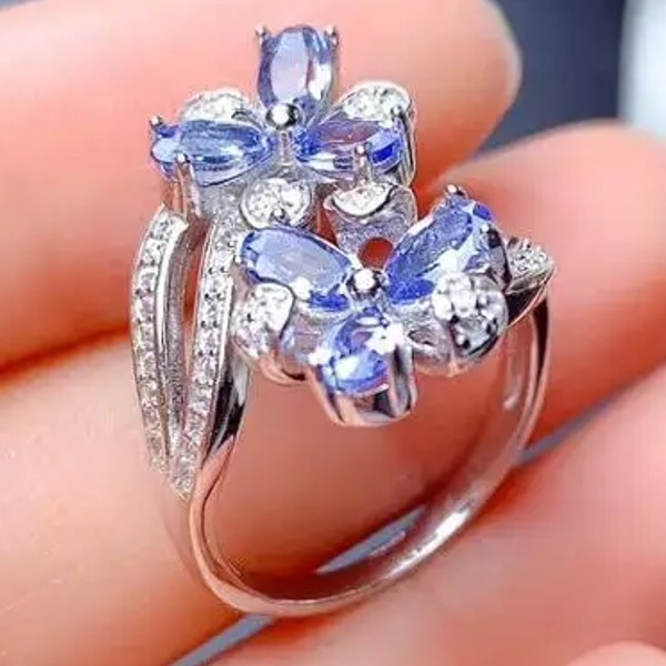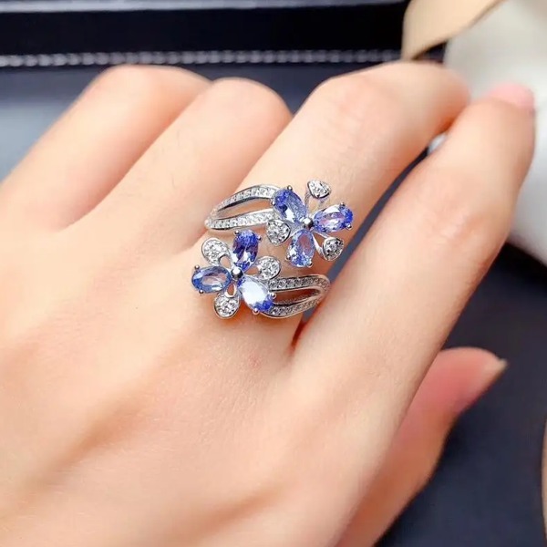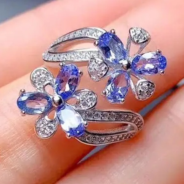女性用天然タンザナイトリング ホワイトゴールドリング s925シルバー 高級ジュエリー プロポーズリング