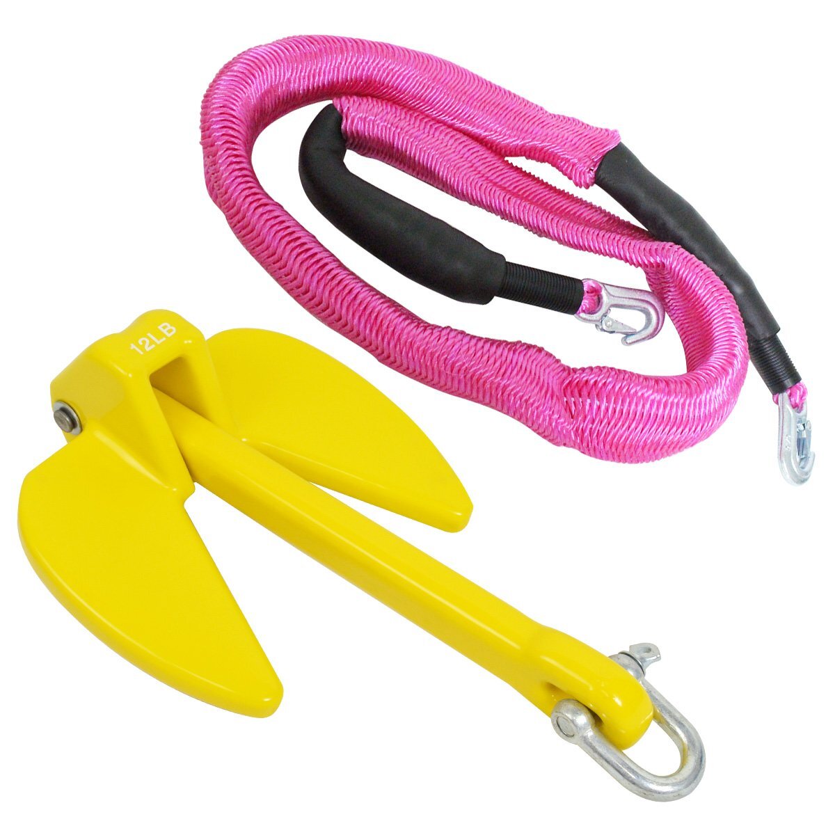 『伸縮ロープ/アンカーセット』ジェットスキー 爪型 アンカー 12LBS 5.5kg 黄色 6M フロート のびのび アンカー ロープ ピンク