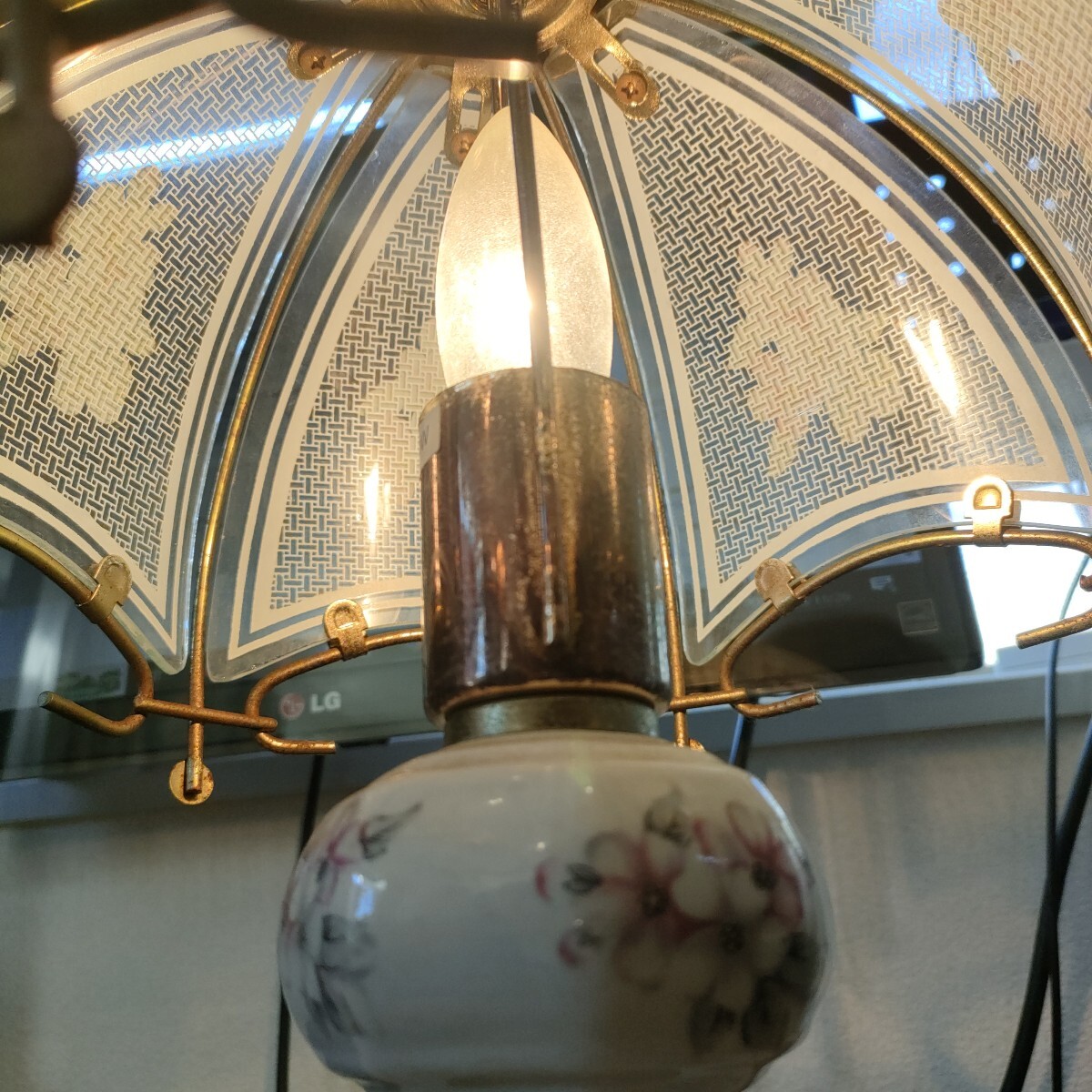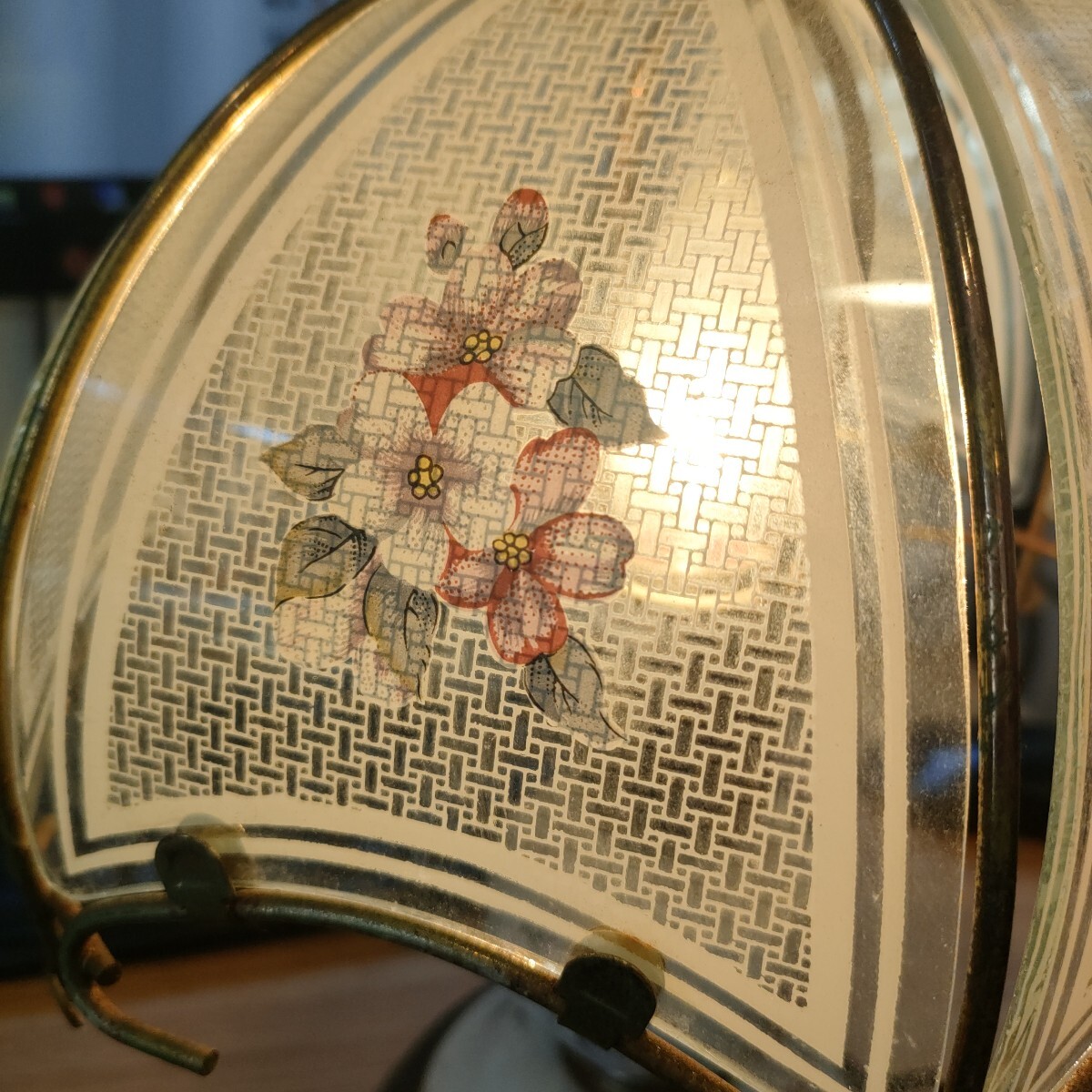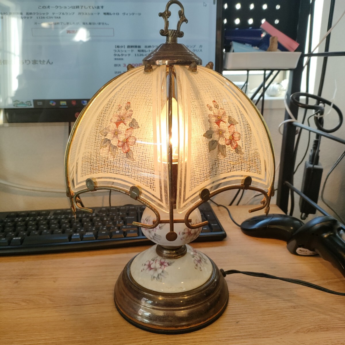 【希少】鹿野漆器 花柄クラシック テーブルランプ ガラスシェード 昭和レトロ ヴィンテージ 陶器 クリスタルタッチ 1126-C3Y-TA8