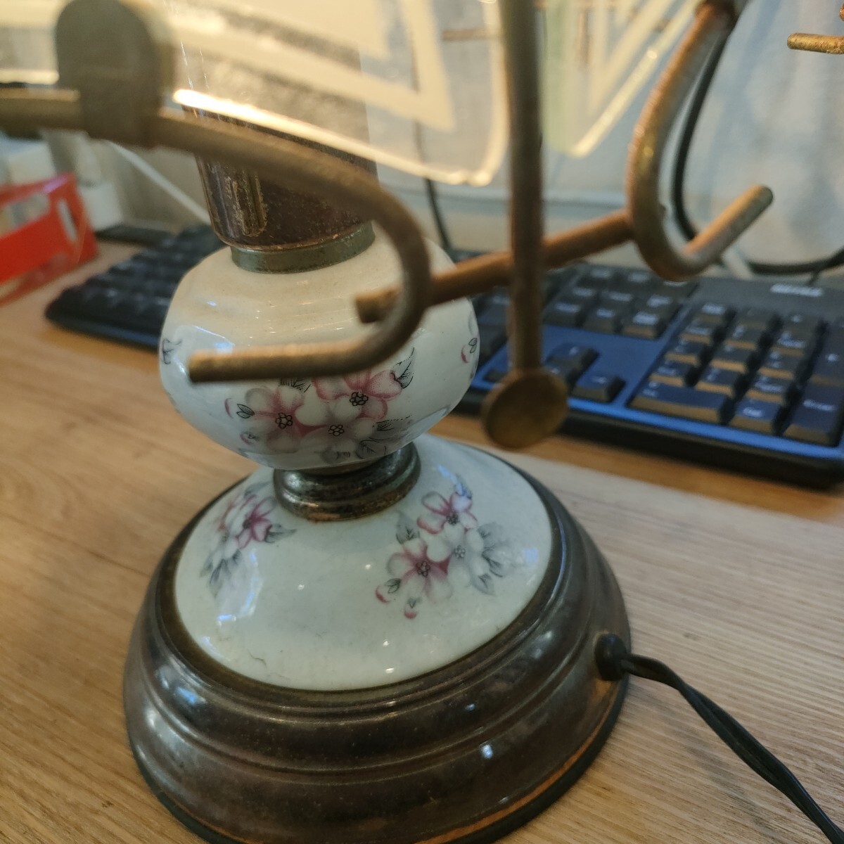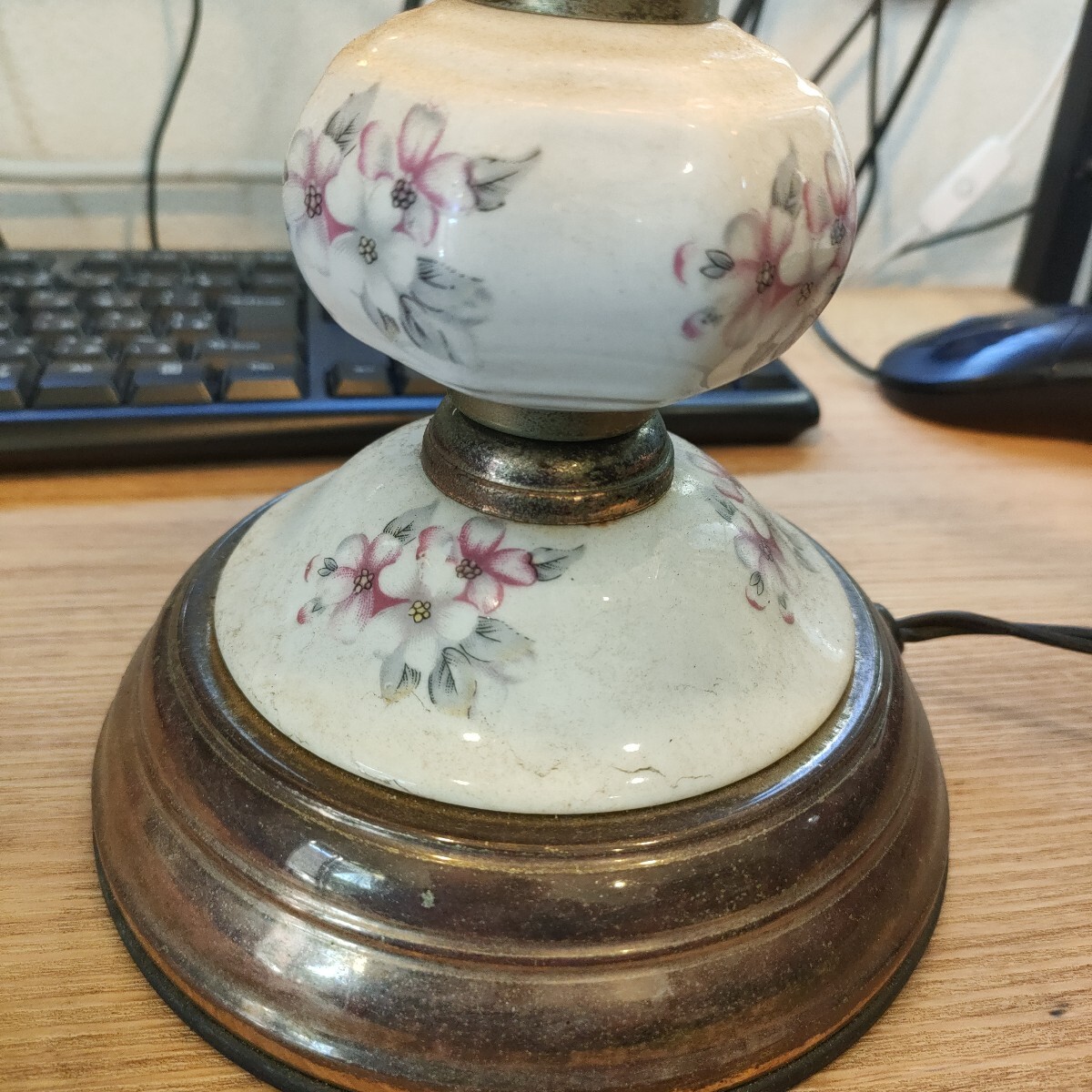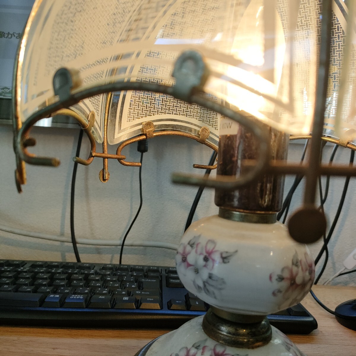 【希少】鹿野漆器 花柄クラシック テーブルランプ ガラスシェード 昭和レトロ ヴィンテージ 陶器 クリスタルタッチ 1126-C3Y-TA8