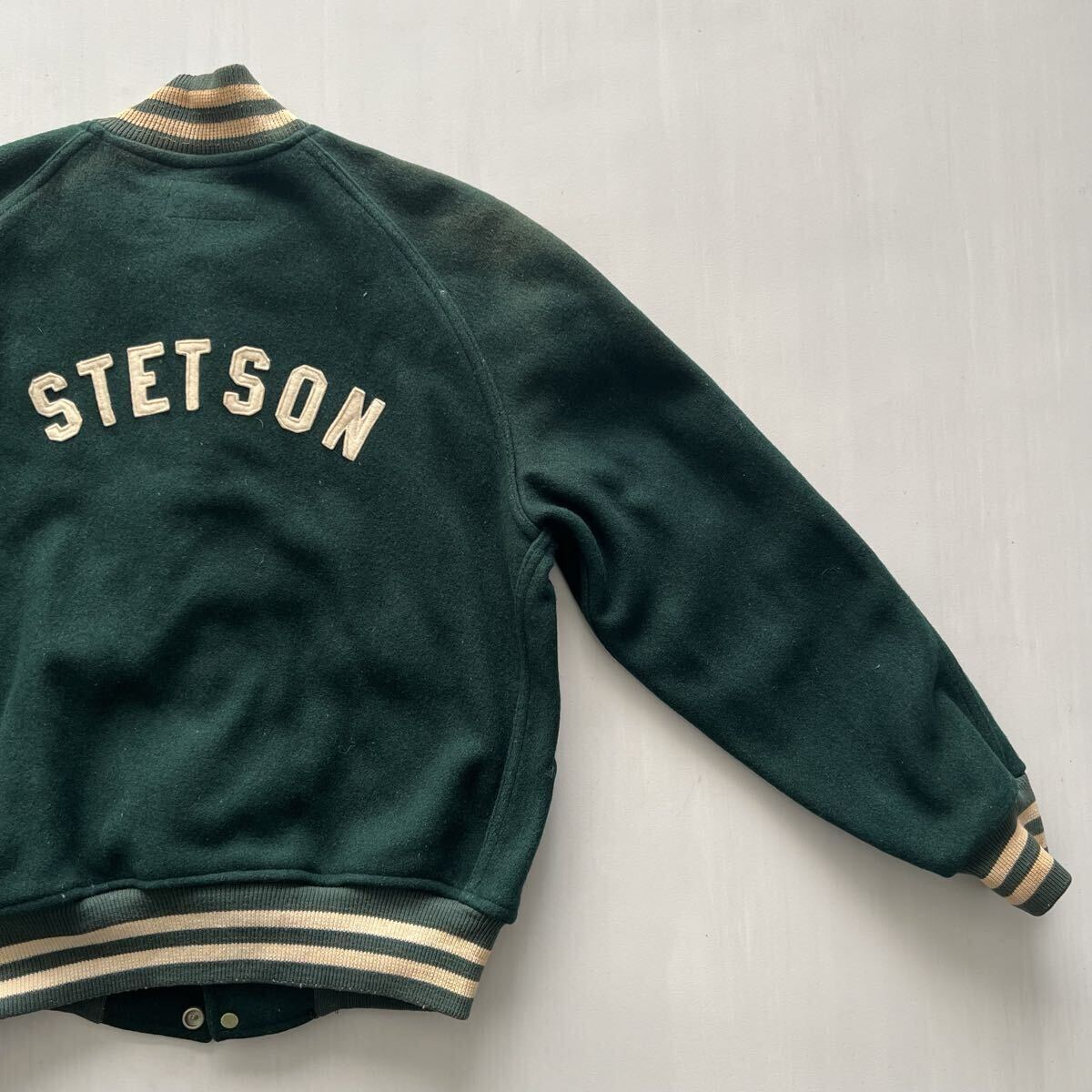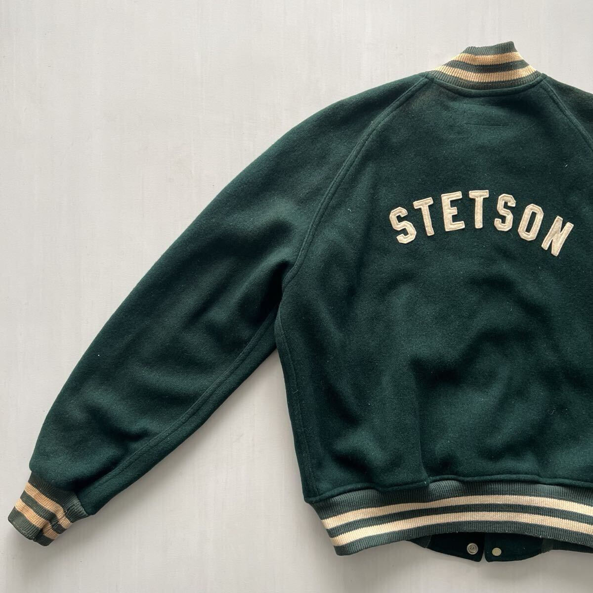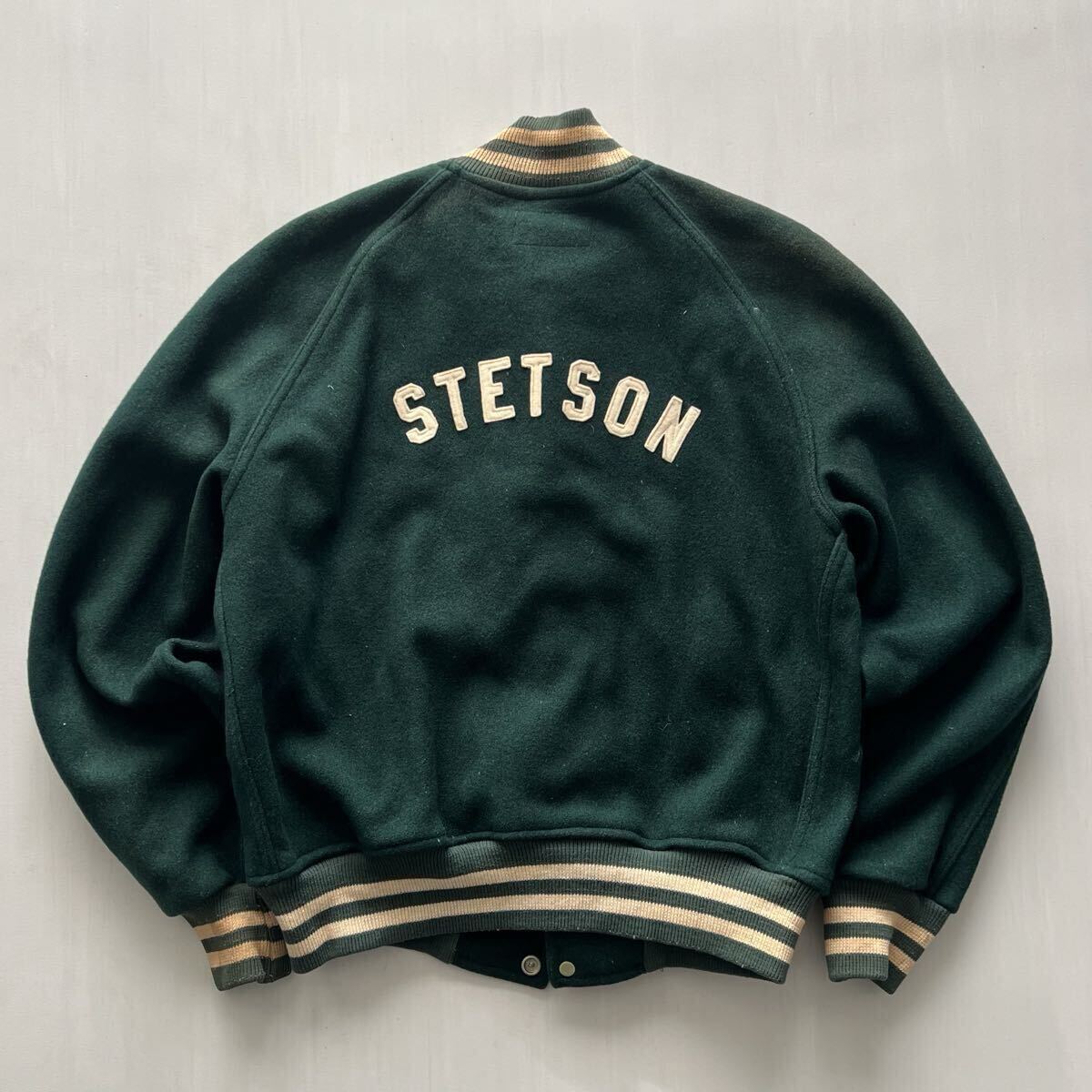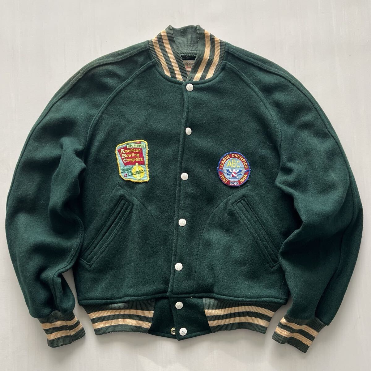 グリーンベースのウール地にワッペンの着く雰囲気ある1着。胸元にはボーリング大会のチャンピオンワッペンが付いています。