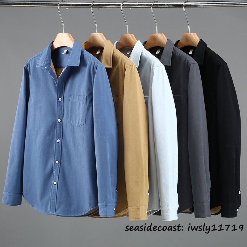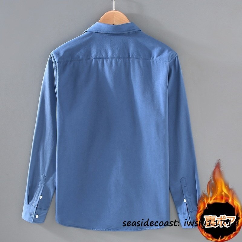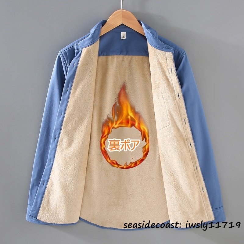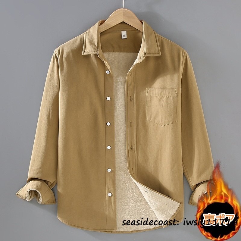 秋冬新品*裏フリース メンズ 長袖シャツ 裏ボア 裏起毛 厚手 防寒 保温 無地 シャツジャケット ブルゾン ワークシャツ 通勤 カーキ XL