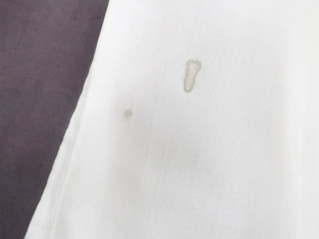 リサイクル商品のため、表所々スレとしみがございます。衿・袖口薄汚れがございますが着用可能なお品です。 地色は くすみ紫です。 1枚目の画像が近いお色かと思われます。 素材は正絹です。 |