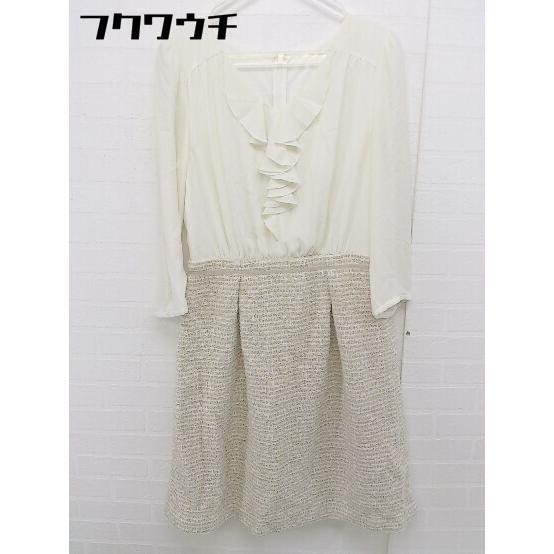 ◇ CLEAR IMPRESSION クリアインプレッション 切り替え 七分袖 膝丈 ワンピース サイズ2 ベージュ系 レディース