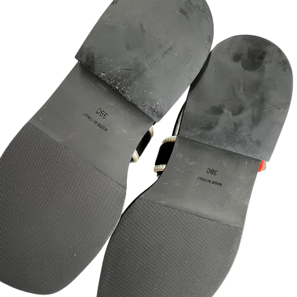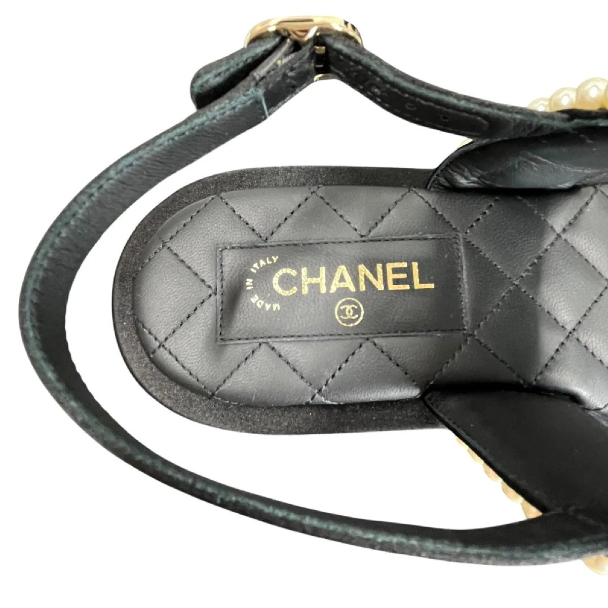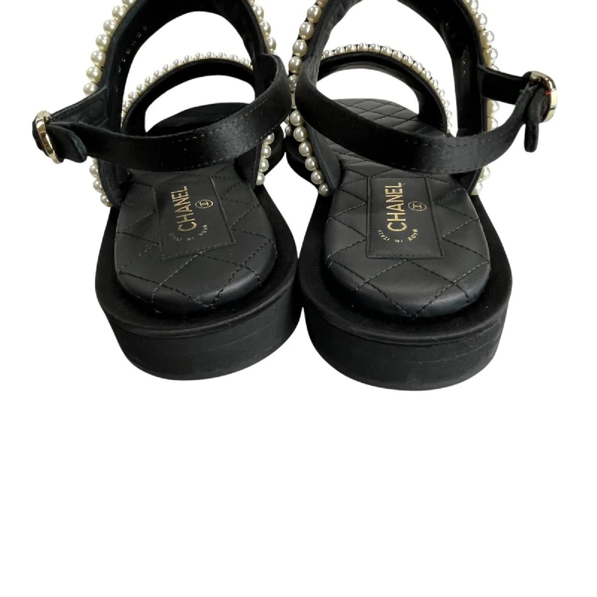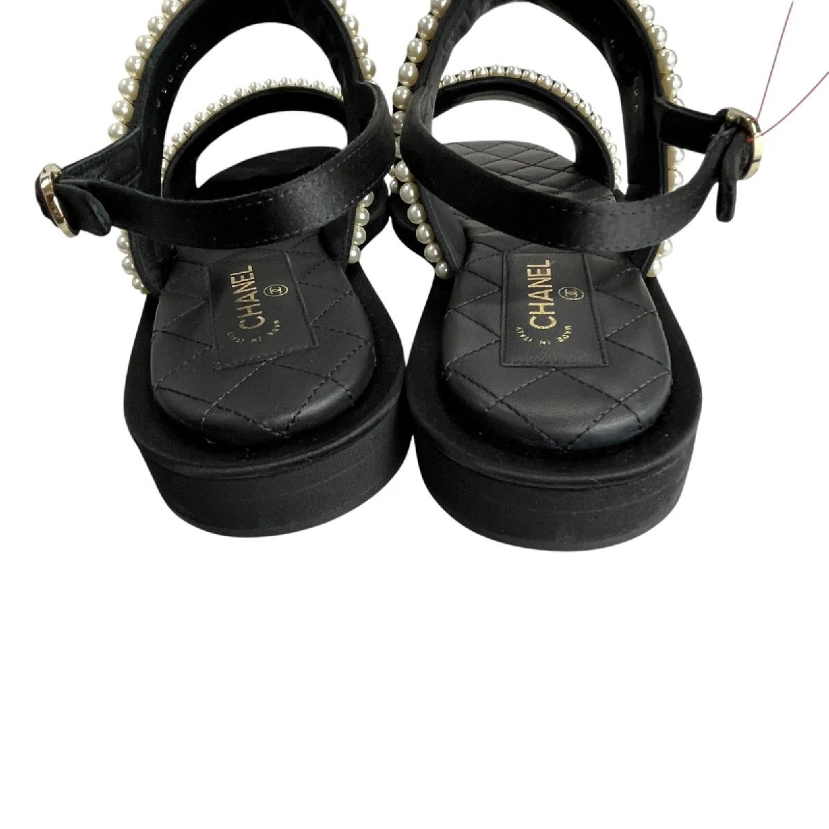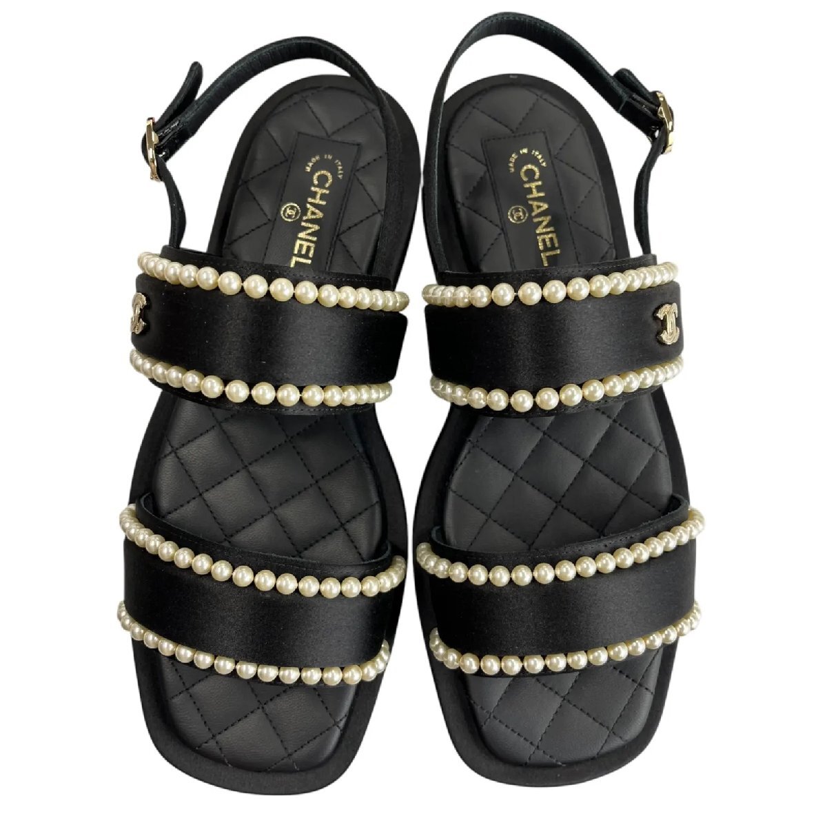 ●未使用 シャネル CHANEL ココマーク パール サテン サンダル ブラック 38、25cm レディース S5P133