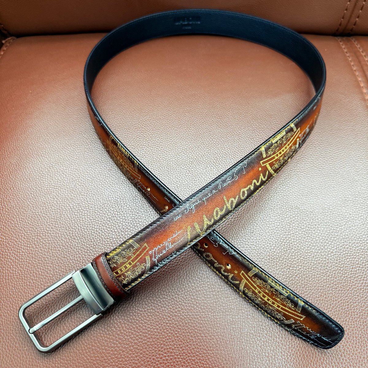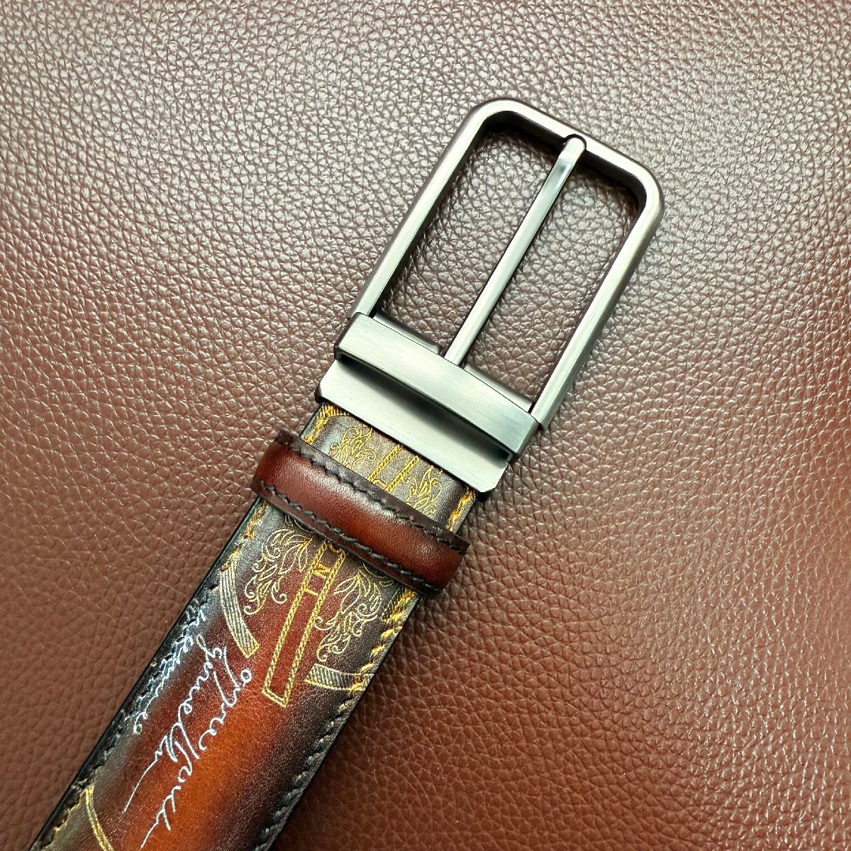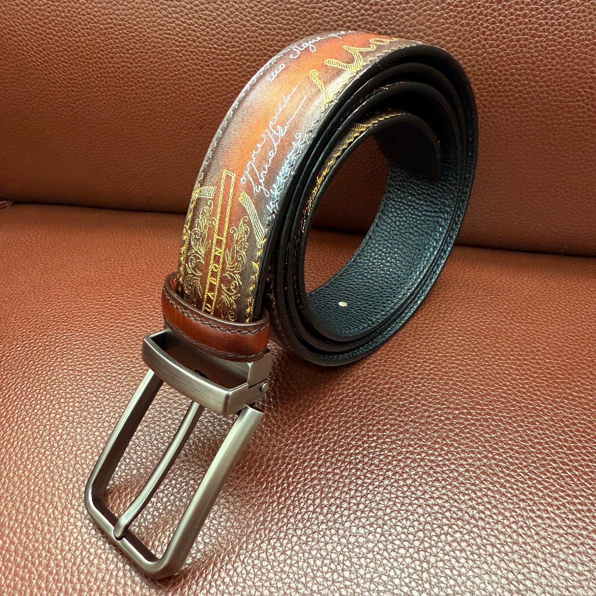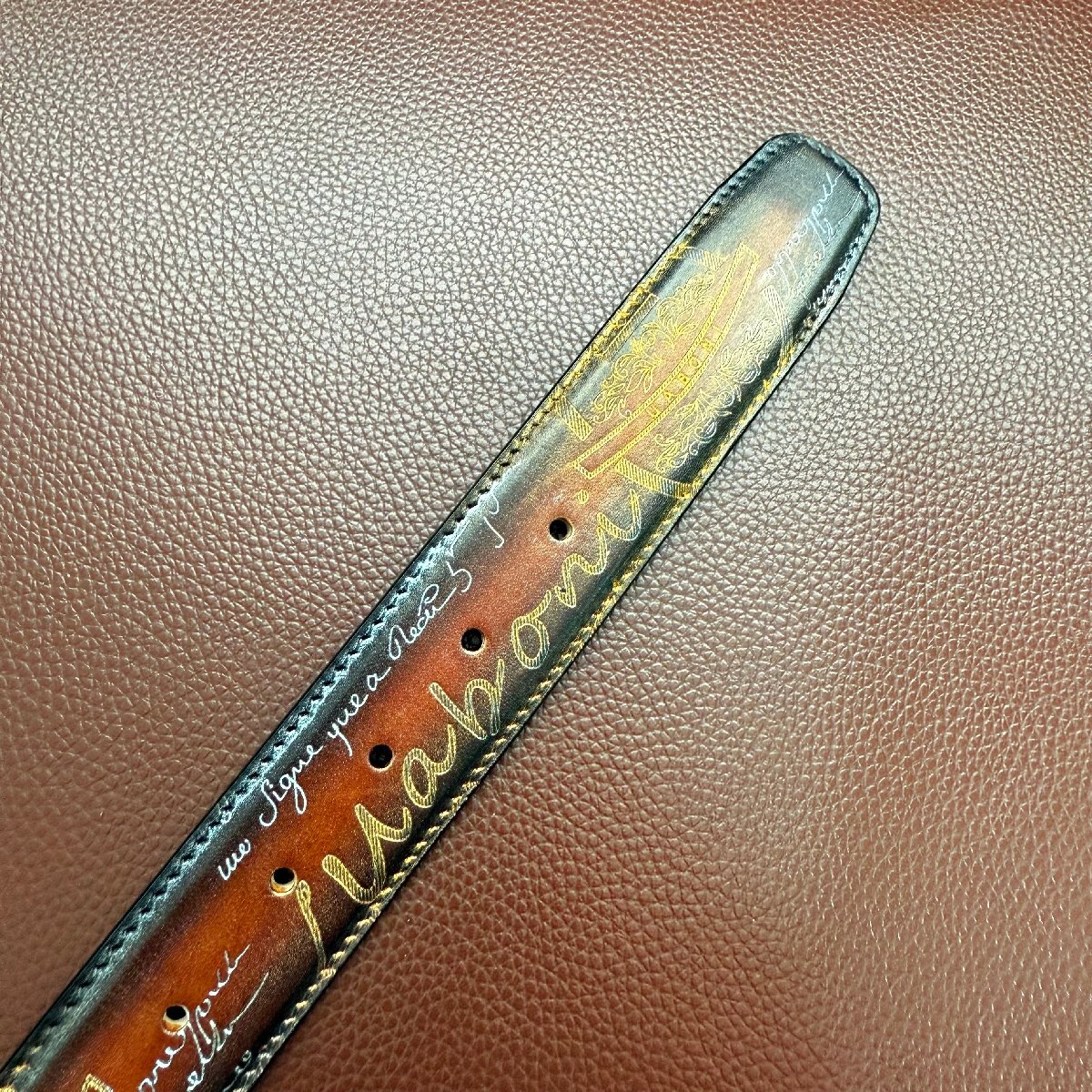 貴重品 EU製 定価9万◆UABONI*ユアボニ*幻のパティーヌ*ベルト◆レザー カーフスキン 手染 ゴールデン 調節可能 スーツ ビジネス 紳士用